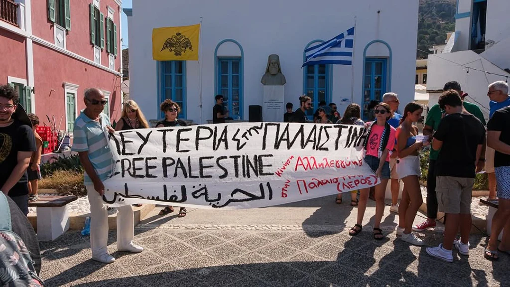 Κινητοποιήσεις αλληλεγγύης υπέρ της Παλαιστίνης πραγματοποιήθηκαν την Κυριακή 10-8-2025 στη Λέρο και άλλα νησιά νησιά της Δωδεκανήσου.