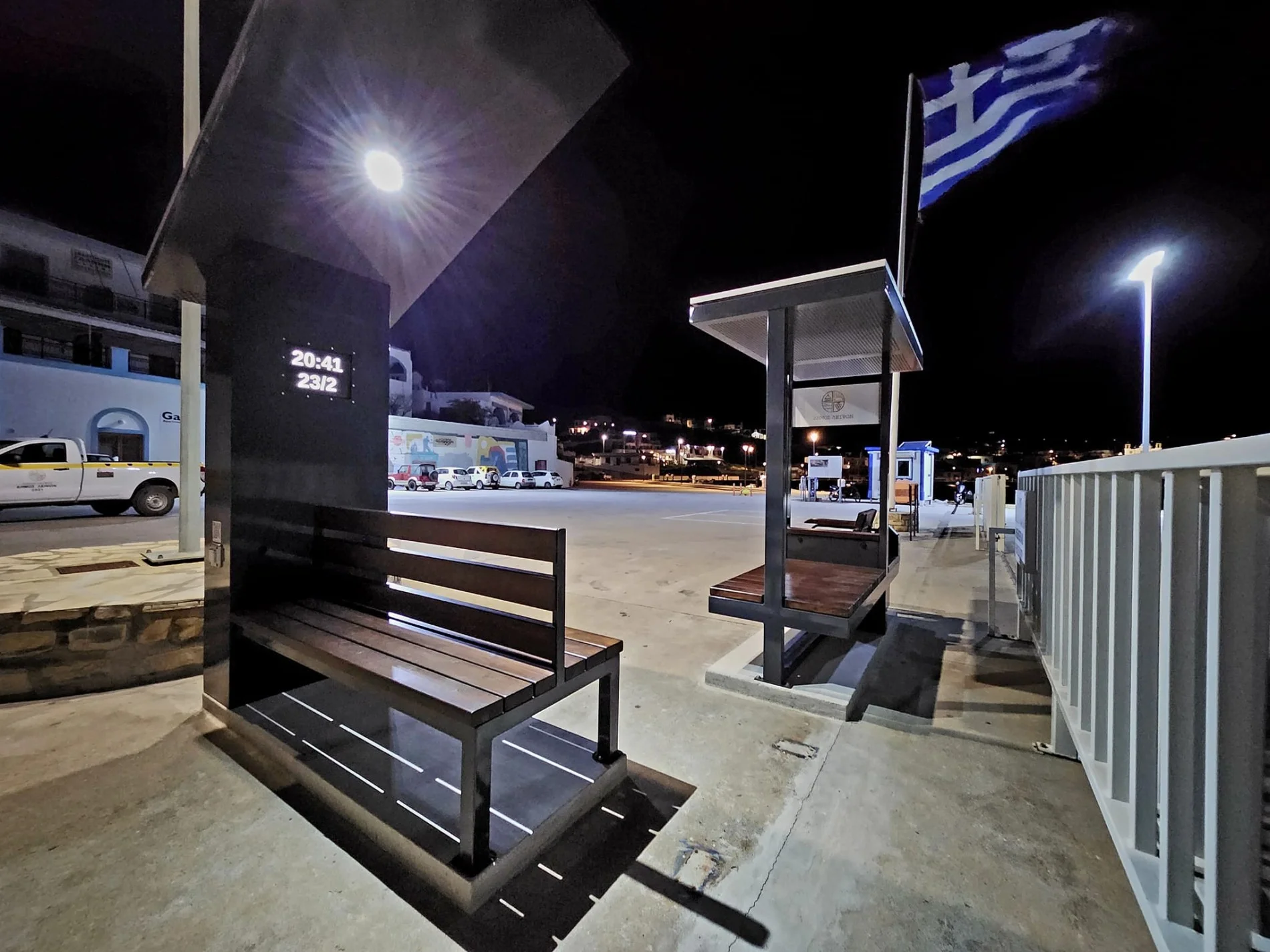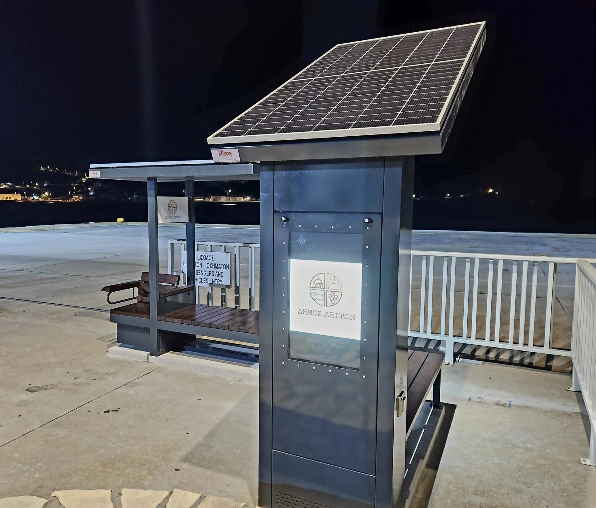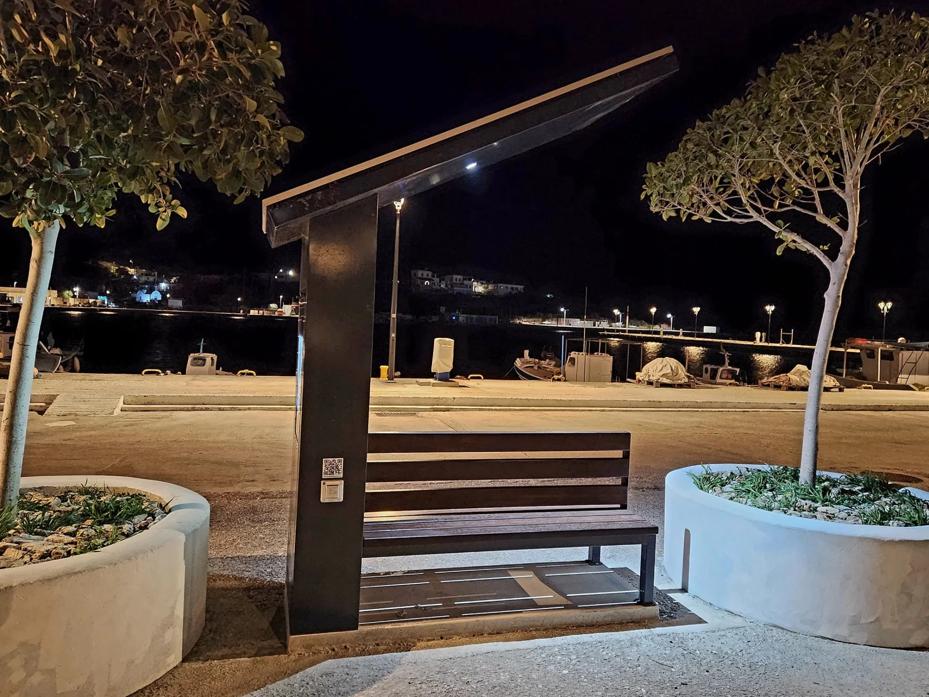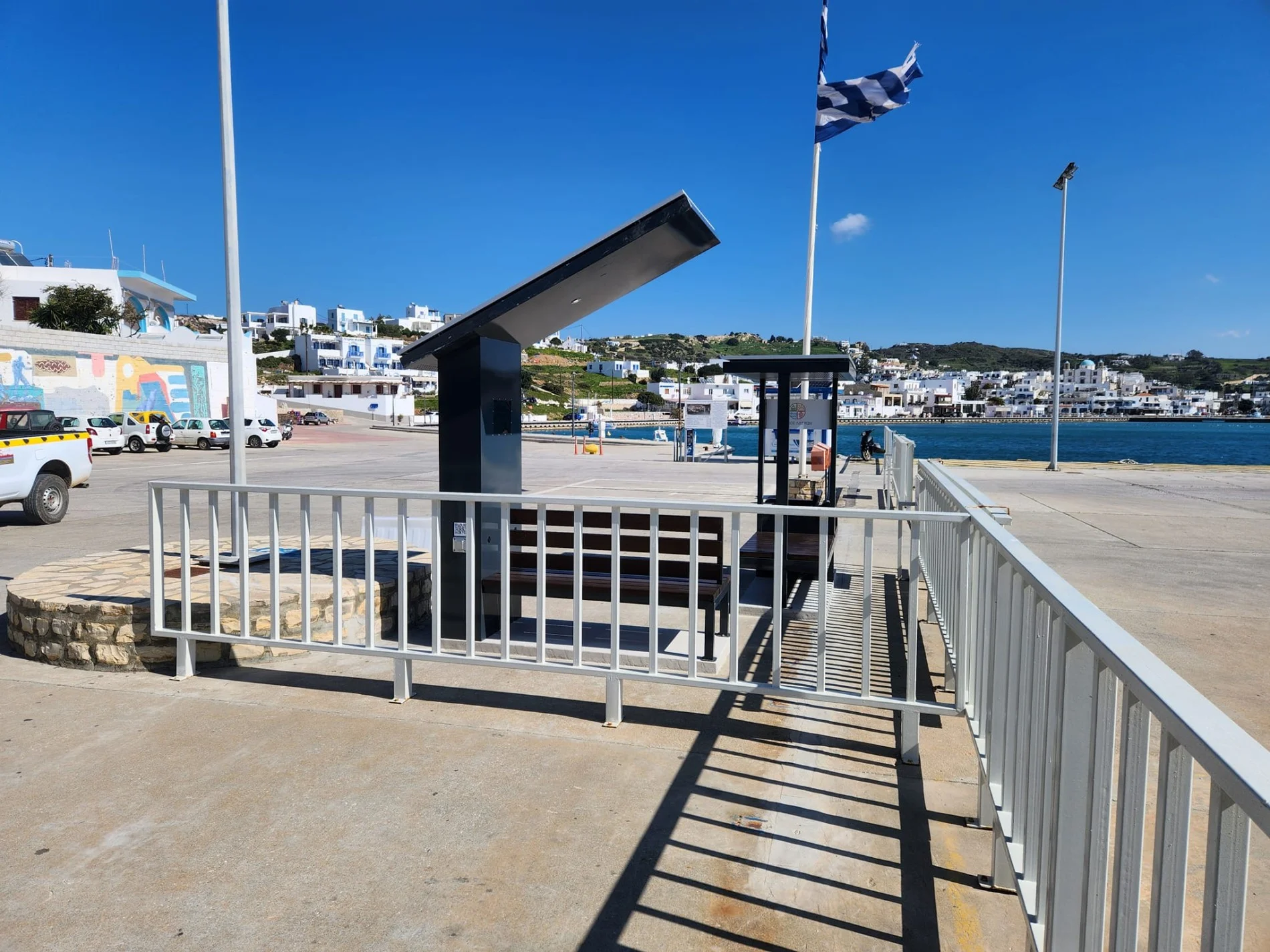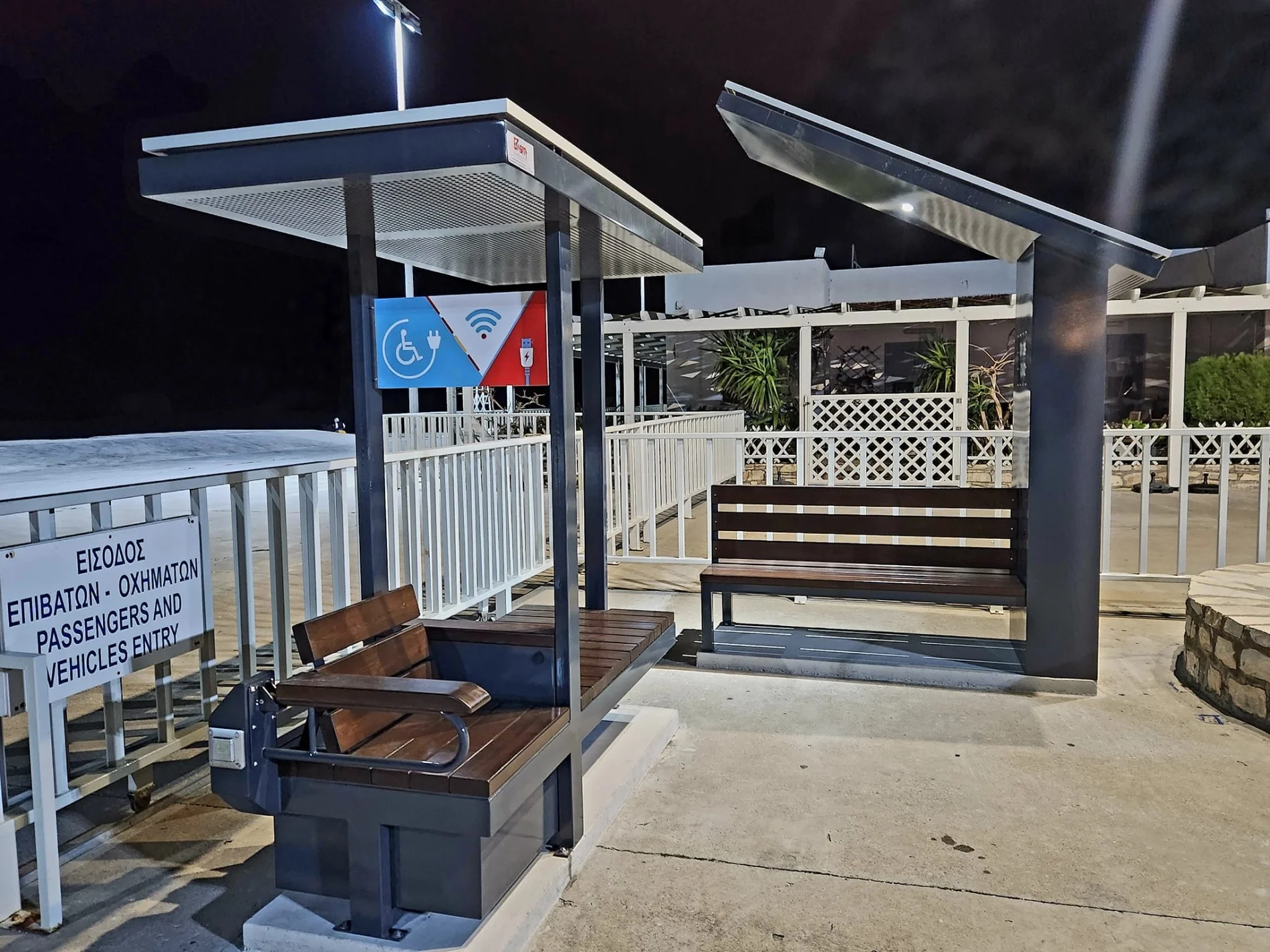 Η τοποθέτηση των 2 πάγκων στο κομβικό σημείο της εισόδου του λιμανιού εξυπηρετεί όλους τους επιβάτες που αναμένουν να επιβιβαστούν στα πλοία.
