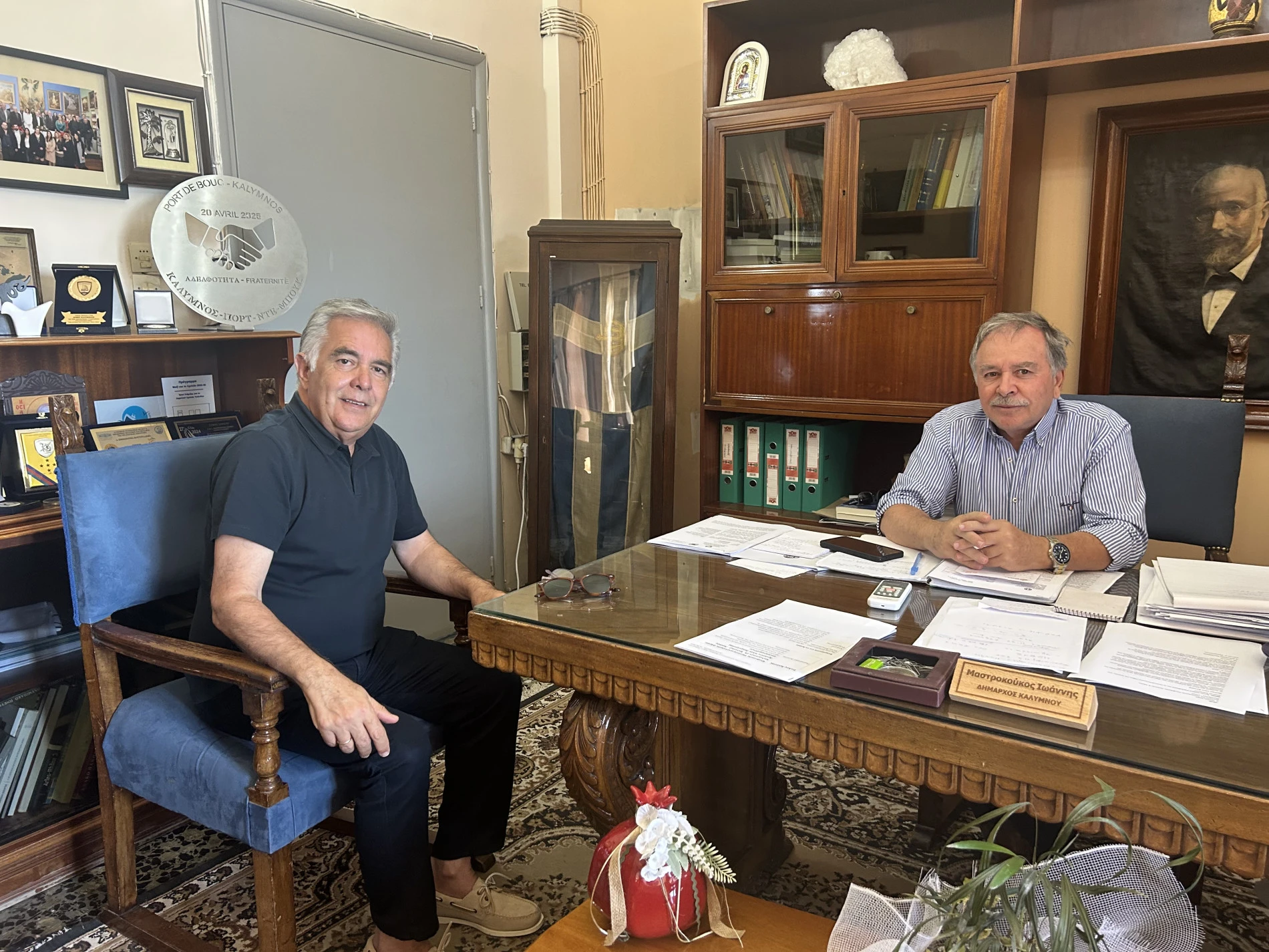 Στην Κάλυμνο, ο κ. Υψηλάντης συναντήθηκε με τον Έπαρχο, κ. Μανώλη Μουσελή, και τον Δήμαρχο, κ. Γιάννη Μαστροκούκο, με στόχο την ανταλλαγή απόψεων για την περαιτέρω ανάπτυξη του νησιού αλλά και συνολικότερα των νησιών που ανήκουν στο Επαρχείο. Οι συζητήσεις επικεντρώθηκαν στην περαιτέρω τουριστική ανάπτυξη της Καλύμνου ιδιαίτερα στον τομέα του αναρριχητικού και καταδυτικού τουρισμού , η στήριξη της σπογγαλιείας και η των προκλήσεων που αντιμετωπίζουν οι νησιωτικές κοινότητες.