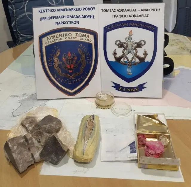 Από το Κεντρικό Λιμεναρχείο Ρόδου που διενεργεί την προανάκριση, κατασχέθηκαν οι ανευρεθείσες ναρκωτικές ουσίες, καθώς και μία συσκευή κινητής τηλεφωνίας.