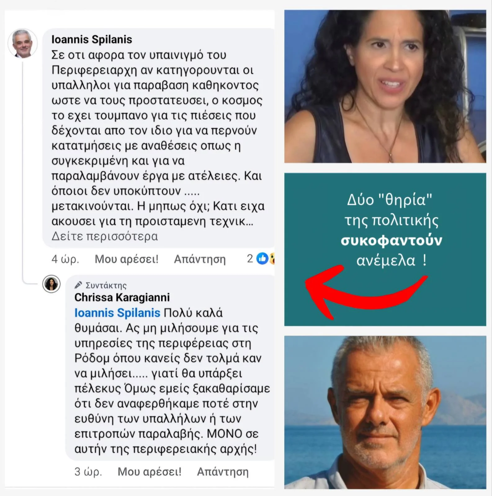 ΔΕΛΤΙΟ ΤΥΠΟΥ – Η συκοφαντία δεν είναι πολιτική, είναι απόγνωση και κατάντια. Απάντηση στον πρόσφατο διάλογο που είδε το φως της δημοσιότητας στα social media και στον οποίο πρωταγωνιστούν δύο πρόσωπα, η Χρύσα Καραγιάννη και ο Ιωάννης Σπιλάνης, που νομίζουν ότι υπηρετούν την πολιτική: