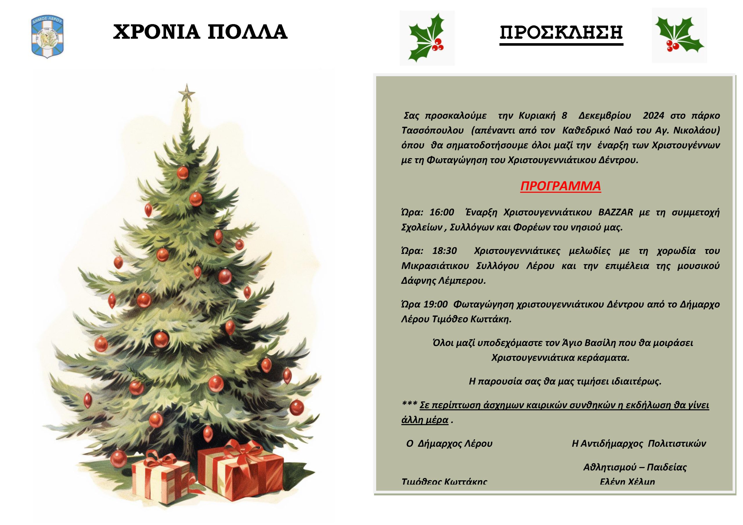 ΤΑ ΝΕΑ ΤΗΣ ΛΕΡΟΥ Δήμος Λέρου: Την Κυριακή 8 Δεκεμβρίου 2024 η φωταγώγηση του Χριστουγεννιάτικου δέντρου Σ Συντακτική ομάδα Leros News 3 Δεκεμβρίου 2024 προβολές wa #LEROS #ΔΗΜΟΣ ΛΕΡΟΥ #ΛΕΡΟΣ Ακολουθήστε το Leros News στο κανάλι μας στο YouTube wa Σχόλια αναγνωστών Προβολή σχολίων ... Γράψε σχόλιο Τα σχόλια δημοσιεύονται κατόπιν έγκρισης. Περισσότερα σχόλια Company ΌνομαEmailΣχόλιο Έχω διαβάσει και αποδέχομαι τους Όρους Χρήσης και την Πολιτική Απορρήτου. Η φόρμα προστατεύεται από reCAPTCHA και ισχύουν η Πολιτική Απορρήτου και οι Όροι Χρήσης της Google. Υποβολή σχολίου Αντιγραφή link Κοινοποίηση Share