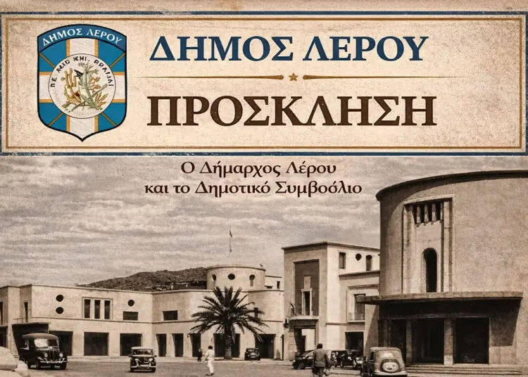Ο Δήμος Λέρου προσκαλεί τους πολίτες και τους φορείς του νησιού στη συνάντηση – παρουσίαση των εναλλακτικών σεναρίων χωρικής οργάνωσης, στο πλαίσιο της μελέτης του Τοπικού Πολεοδομικού Σχεδίου (ΤΠΣ) Δήμου Λέρου.