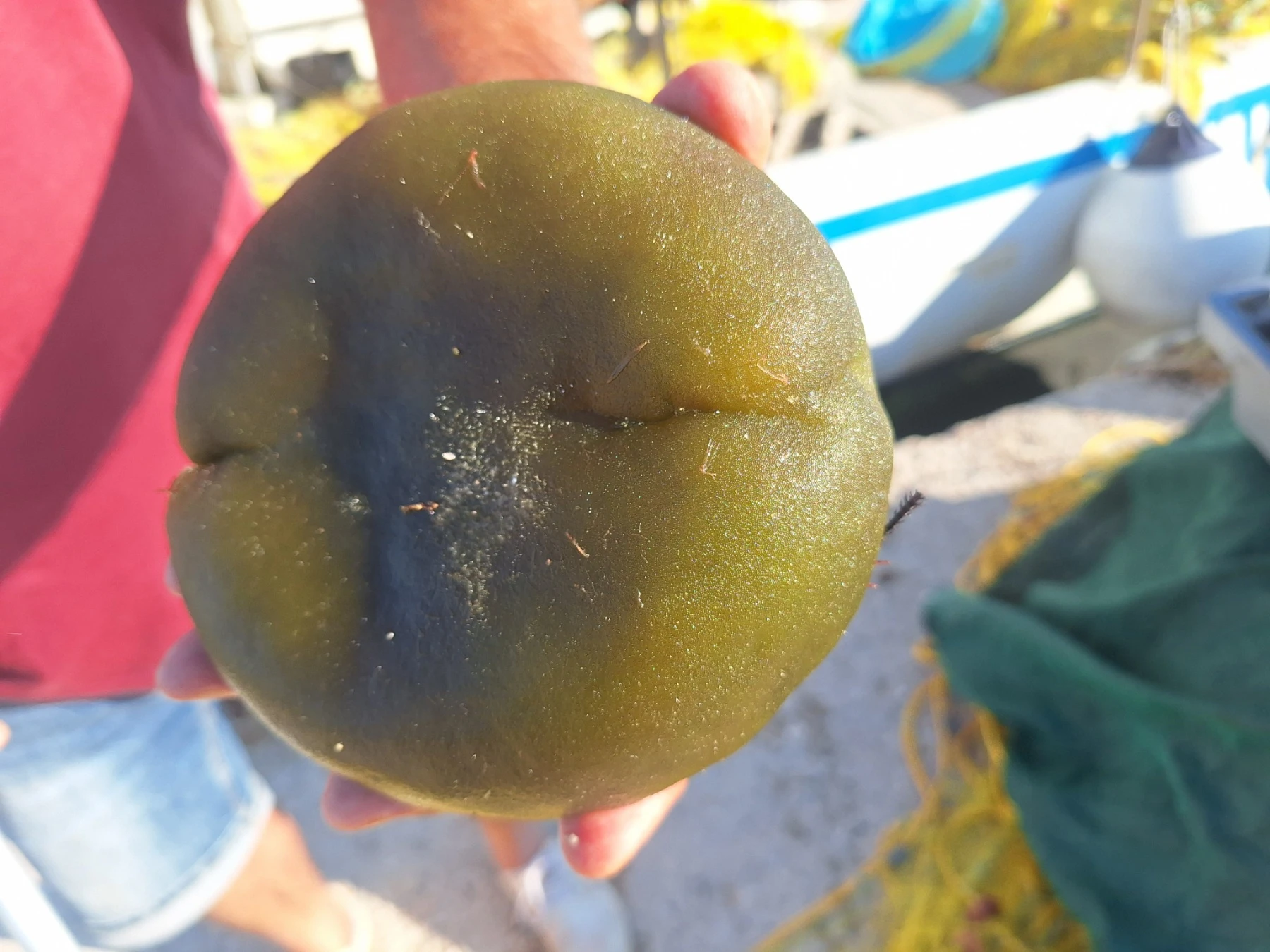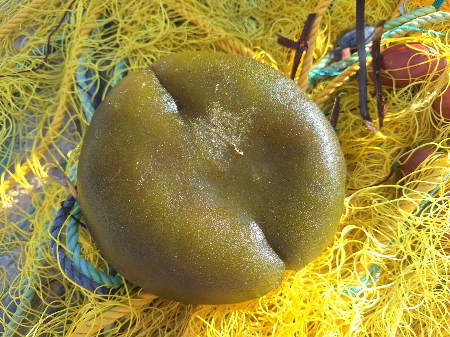 Πάντα είχα την απορία ποια είναι η επιστημονική ονομασία αυτού του πλάσματος έως ότου φέτος η έξυπνη εφαρμογή (lens) που έχει στο κινητό της τηλέφωνο η Μ. Ζαΐρη, το κατονόμασε ως το «Codium bursa». Στα ελληνικά θα το βρεις και ως “Καρπούζι της θάλασσας”…