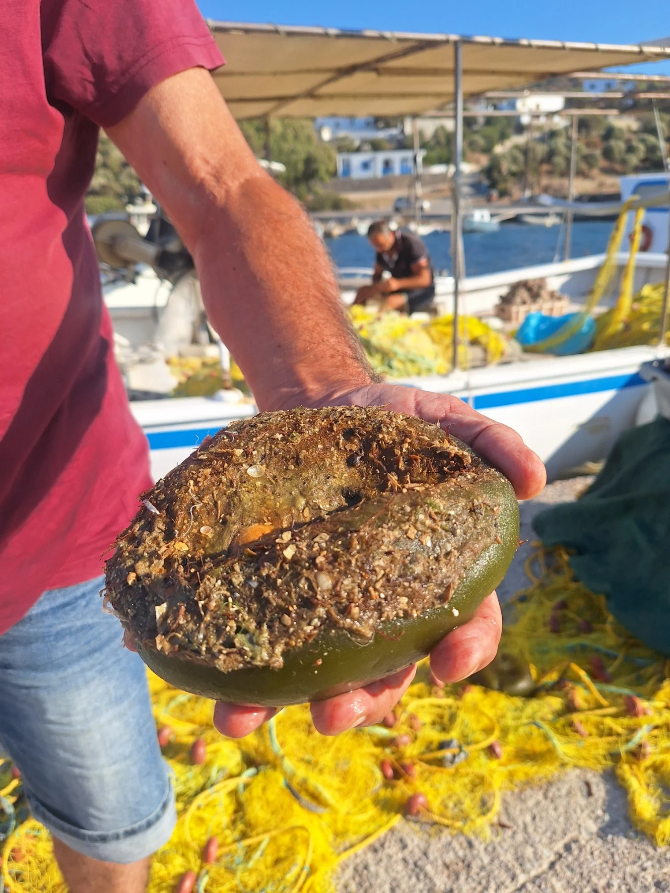«Είναι ένα είδος θαλάσσιου φυκιού, σφαιρικού σχήματος, με σκούρο πράσινο χρώμα και σπογγώδη υφή. Το βρίσκουμε στη Μεσόγειο και στον Ατλαντικό Ωκεανό, συχνά μαζί με το θαλάσσιο γρασίδι Posidonia oceanica.»