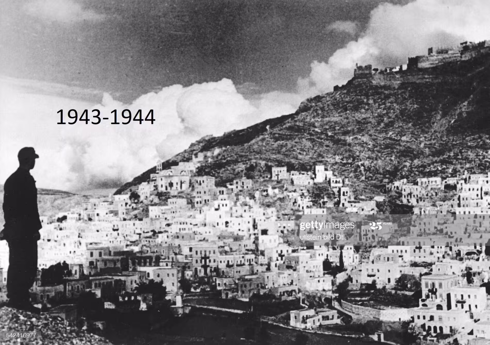 Μετά τη Μάχη της Λέρου τον Νοέμβριο του 1943 (Επιχείρηση Leopard), οι Γερμανοί κατέλαβαν το νησί από τους Ιταλούς και τους Βρετανούς και αμέσως μετά ακολούθησε ένας από τους σκληρότερους χειμώνες που είχε δει το νησί μας και όλο το Αιγαίο.