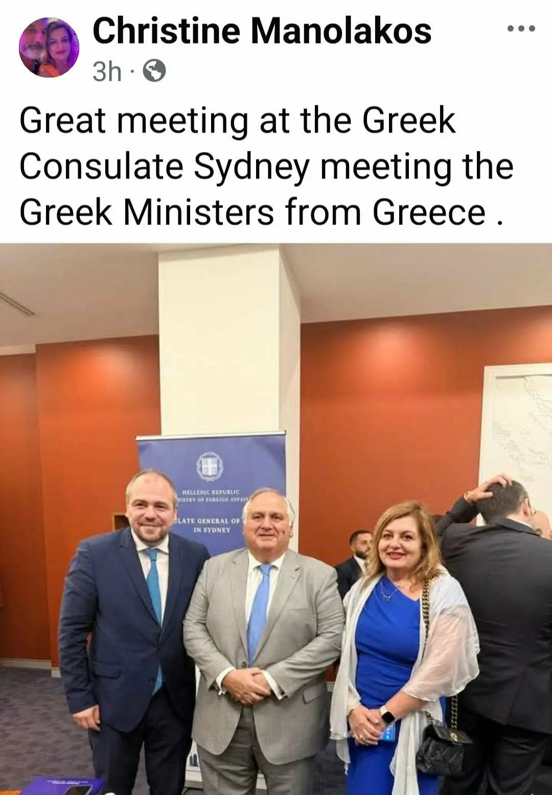 Στις εκδηλώσεις παρούσα ήταν και η σύζυγος του κ. Παυλή, κ. Αρχόντουλα Παυλή, η οποία δραστηριοποιείται επαγγελματικά στην Αυστραλία και συγκαταλέγεται, σύμφωνα με όσα αναφέρθηκαν, στις δραστήριες Ελληνίδες της ομογένειας.