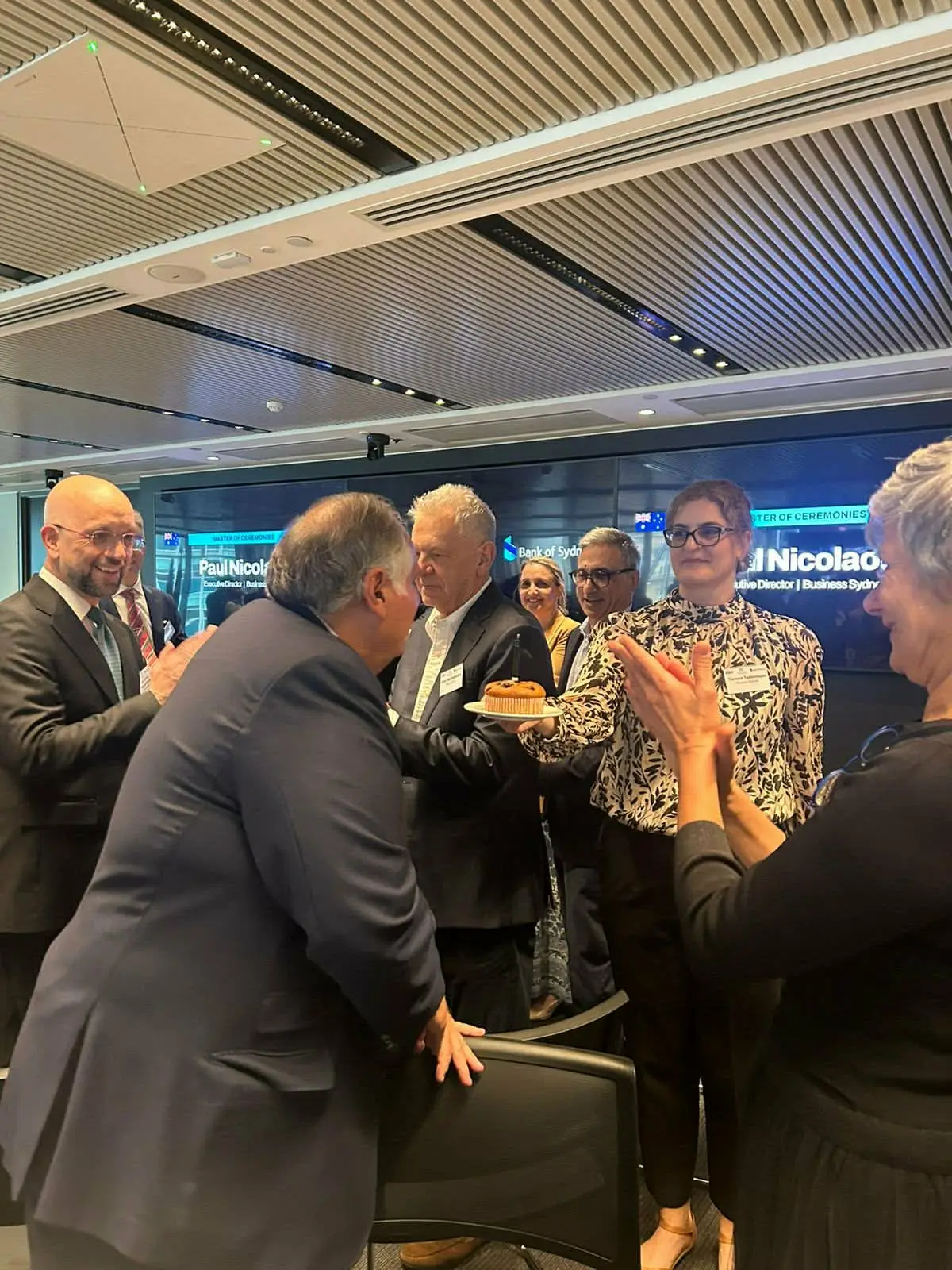 Παράλληλα, ξεχωριστή στιγμή αποτέλεσε η έκπληξη που επιφύλαξε στον κ. Παυλή ο Σύλλογος των μεγαλύτερων επιχειρηματιών του Σίδνεϊ, προσφέροντάς του τούρτα γενεθλίων, σε μια ιδιαίτερα ζεστή και συμβολική κίνηση.