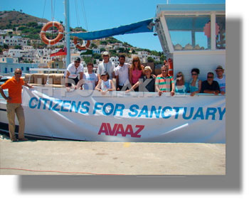 Τους εθελοντές της οργάνωσης AVAAZ υποδέχθηκε στο λιμάνι της Λέρου και ο δήμαρχος του νησιού κ. Μιχάλης Κόλιας, ο οποίος επεσήμαινε ότι ο δήμος προσπαθεί και αυτός με κάθε τρόπο να βοηθήσει τις αρχές και το Δίκτυο Αλληλεγγύης στην προσπάθεια που καταβάλλουν.