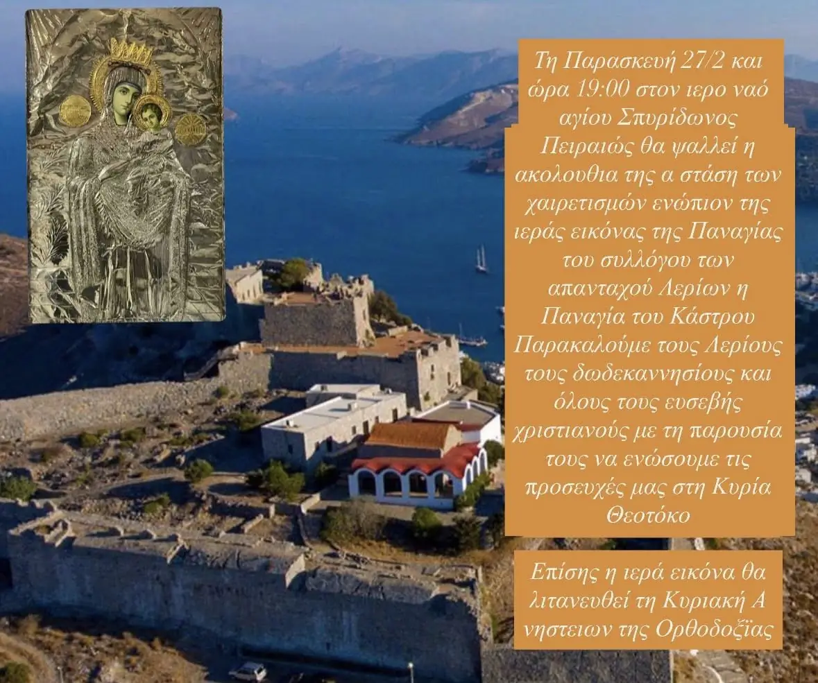 Καλούμε όλους τους Λερίους, τους Δωδεκανήσιους και κάθε πιστό να προσέλθει.