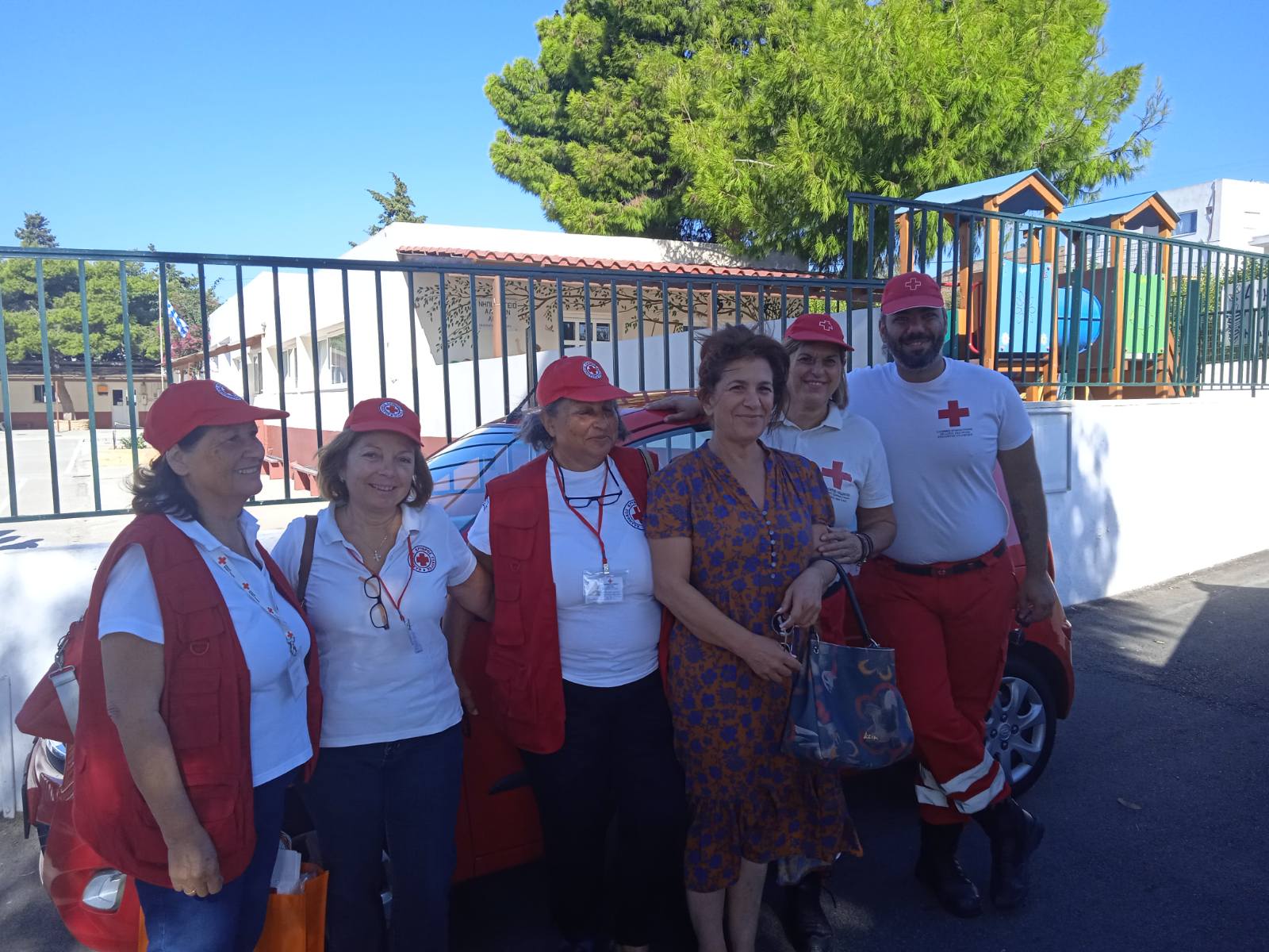Την Τετάρτη 13 Σεπτεμβρίου, κλιμάκιο της Κοινωνικής Πρόνοιας και Σαμαρειτών του Ερυθρού Σταυρού από το νησί της Ρόδου επισκέφθηκε το σχολείο μας και διένειμε σε όλους τους μαθητές του Δημοτικού και του Νηπιαγωγείου γραφική ύλη και υλικό κατάλληλο για τις ανάγκες της σχολικής πράξης.