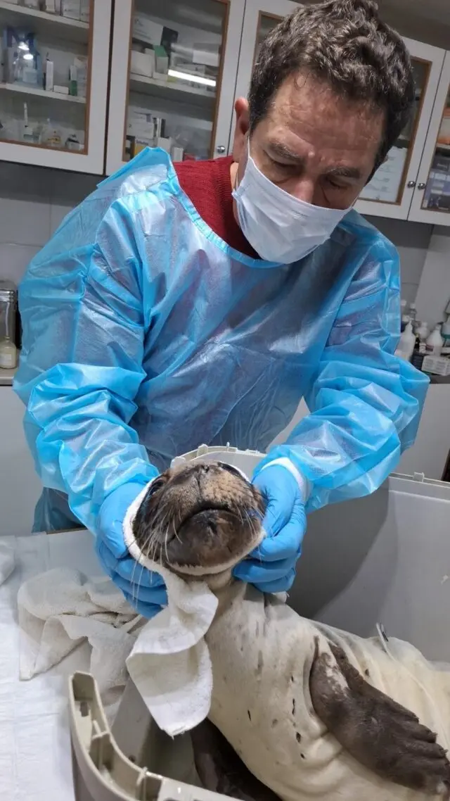 Ο κτηνίατρος Μιχάλης Κοντραφούρης και η κτηνίατρος Νεφέλη Κοντραφούρη από το κτηνιατρικό κέντρο Λέρου έδωσαν πραγματική μάχη για να την κρατήσουν στη ζωή, προσφέροντας πολύτιμη φροντίδα και στήριξη στις πιο κρίσιμες ώρες.