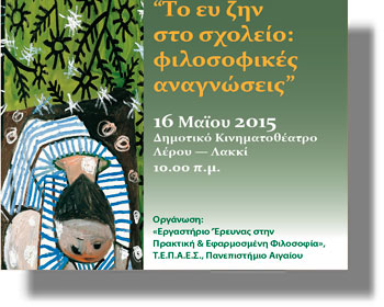 Διεθνής ημερίδα πρόκειται να πραγματοποιηθεί στη Λέρο το Σάββατο 16 Μαΐου 2015, με θέμα “Το ευ ζην στο σχολείο: φιλοσοφικές αναγνώσεις”.