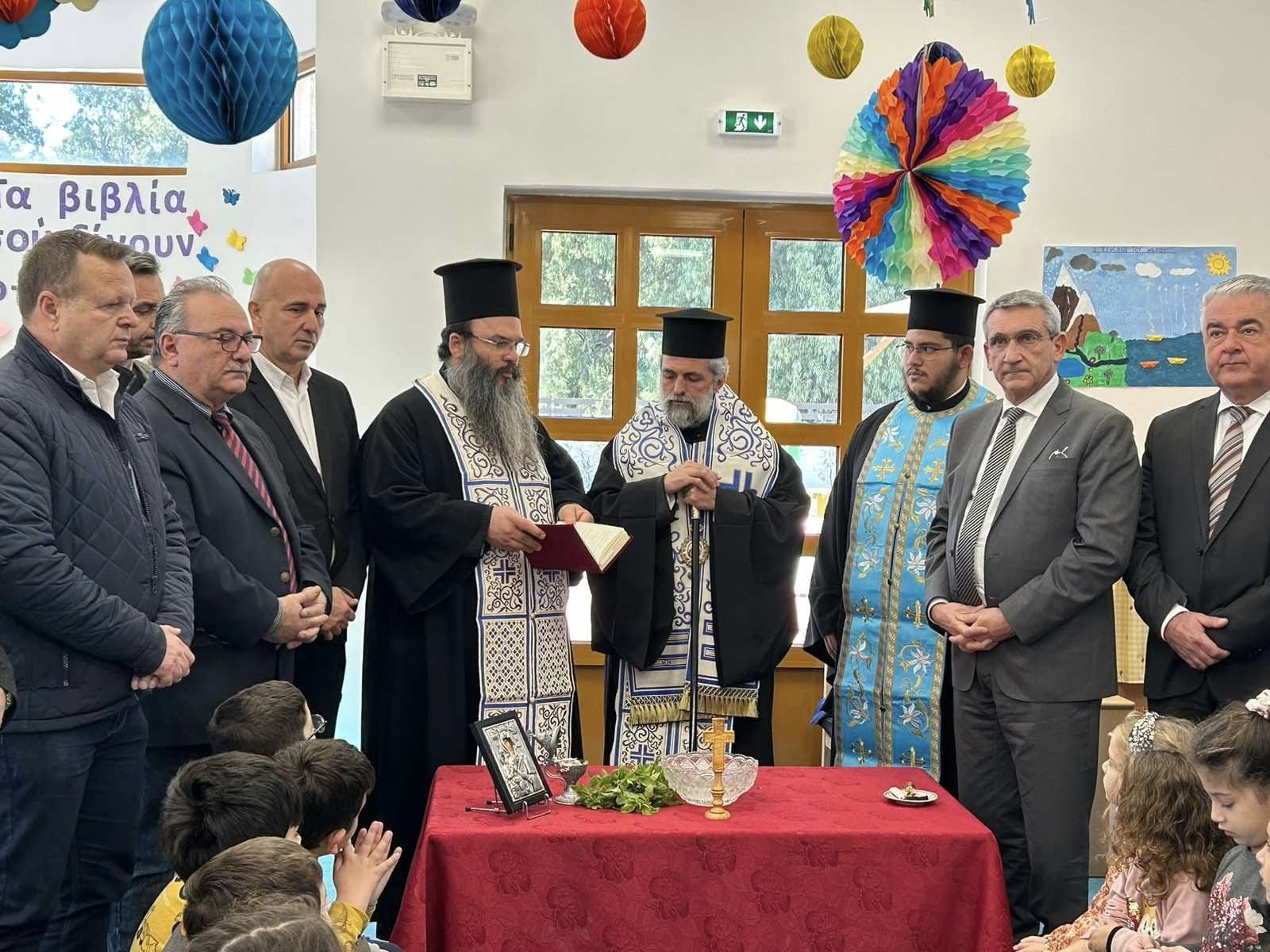 Τα εγκαίνια του Πρότυπου Βιοκληματικού Νηπιαγωγείου στο Λακκί Λέρου παρουσία του Περιφερειάρχη κ. Γ. Χατζημάρκου και των συνεργατών του, του Δημάρχου κ. Μ. Κόλια και των συνεργατών του, των Αρχών του νησιού, της διευθύντριας και εκπαιδευτικών τελέστηκαν σήμερα από το Θεοφιλέστατο Επίσκοπο Στρατονικείας κ.Στέφανο και του Ιερού Κλήρου.