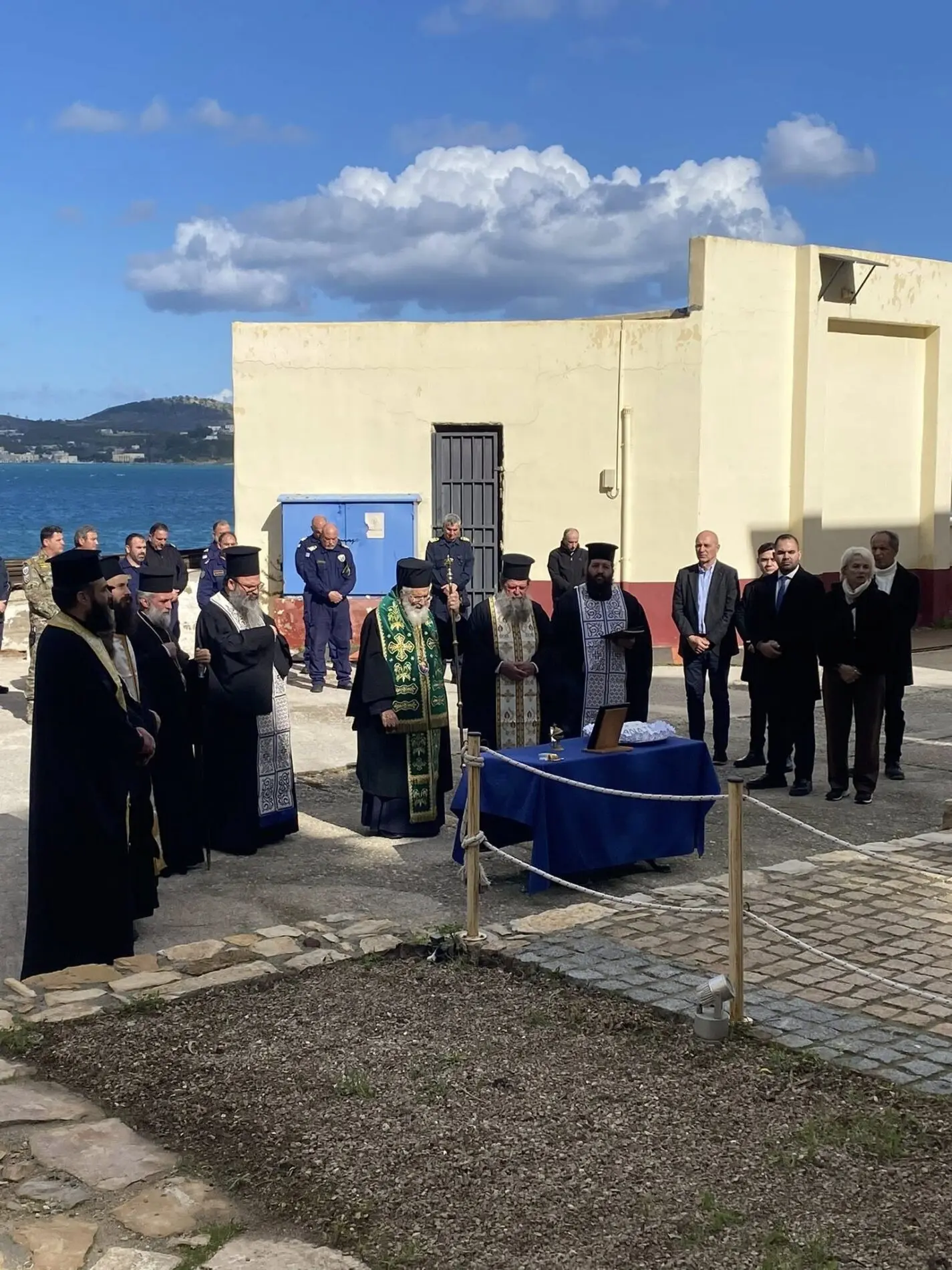 Την Παρασκευή 30.01.2026, ο Σεβασμιώτατος Μητροπολίτης Λέρου, Καλύμνου και Αστυπαλαίας κ.κ. Παΐσιος, συνοδευόμενος από τον Θεοφιλέστατο Επίσκοπο Στρατονικείας κ.Στέφανο και τους ιερείς π. Δαμασκηνό, π. Σέργιο, π. Ιωάννη, π. Παΐσιο και π. Γεώργιο, στις εγκαταστάσεις της ΥΝΤΕΛ και προ του μνημείου αφιερωμένου στους ήρωες των Ιμίων, ετέλεσε επιμνημόσυνη δέηση δια τους αξιωματικούς του Πολεμικού μας Ναυτικού που έπεσαν στα παγωμένα νερά των Ιμίων, την 31η Ιανουαρίου του 1996, Παναγιώτη Βλαχάκου – αντιπλοιάρχου, Χριστοδούλου Καραθανάση – αντιπλοιάρχου και Εκτορα Γιαλοψού – σημαιοφόρου.