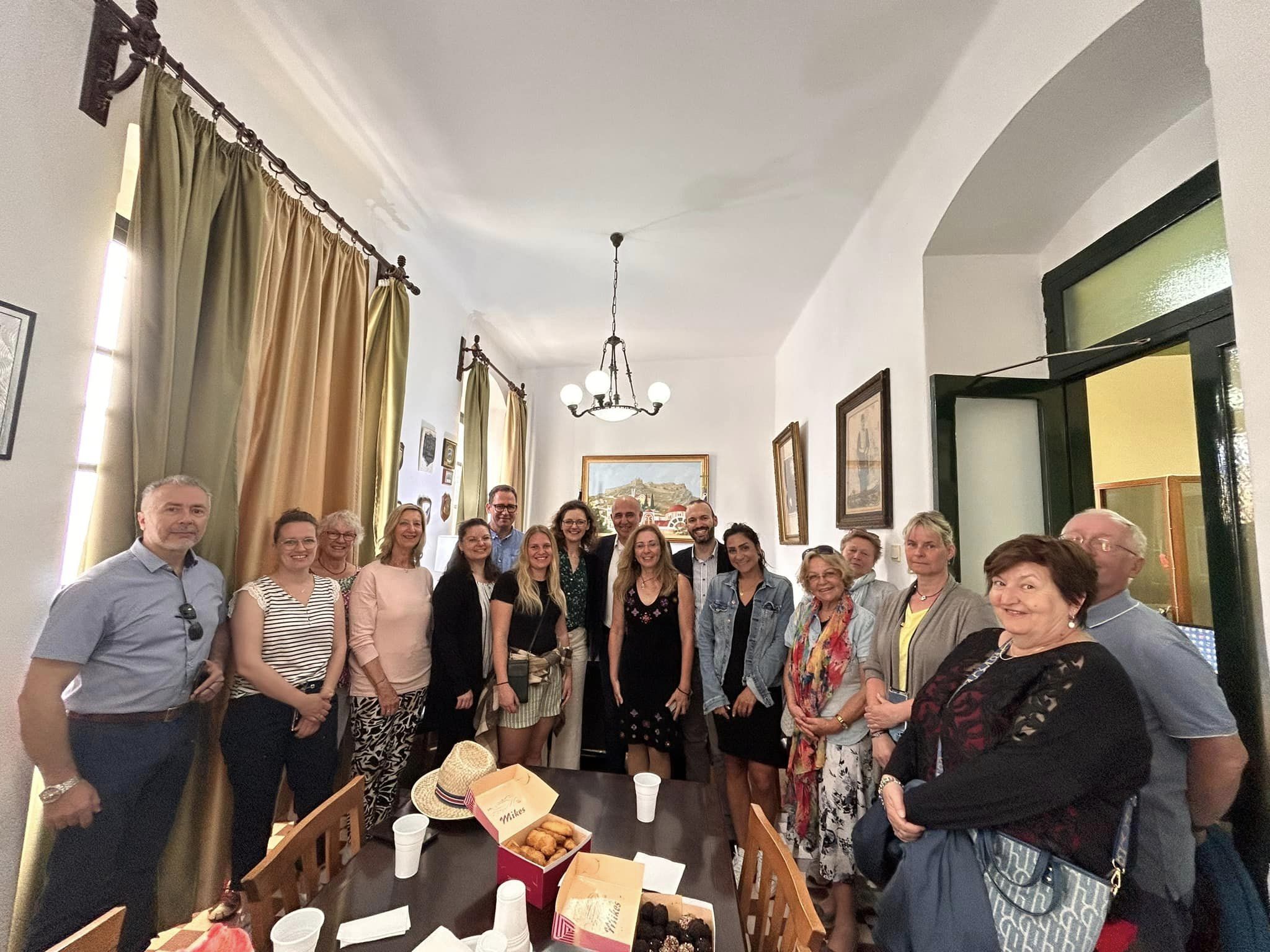 Το νησί μας επισκέφθηκαν μεταξύ 18-21 Μαΐου, 56 υπάλληλοι του αδελφοποιημένου Δήμου Ασχάϊμ υπό την συνοδεία της Αντιδημάρχου κας Marion Seitz, του Γενικού Δ/ντη κ. Christian Schurer, της υπεύθυνης πολιτιστικών και αδελφοποιήσεων κας Ελένης Δημοπούλου και της κας Kathrin Μiroslaw.