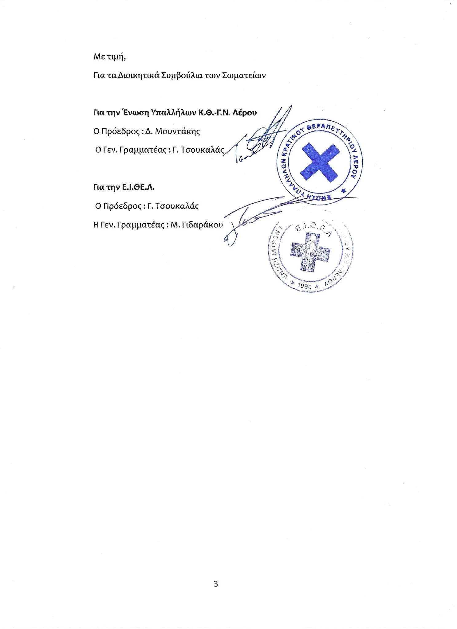 •Ένωση Ιατρών (Ε.Ι.ΘΕ.Λ.) Κ.Θ. – Γ.Ν. – Κ.Υ. Λέρου