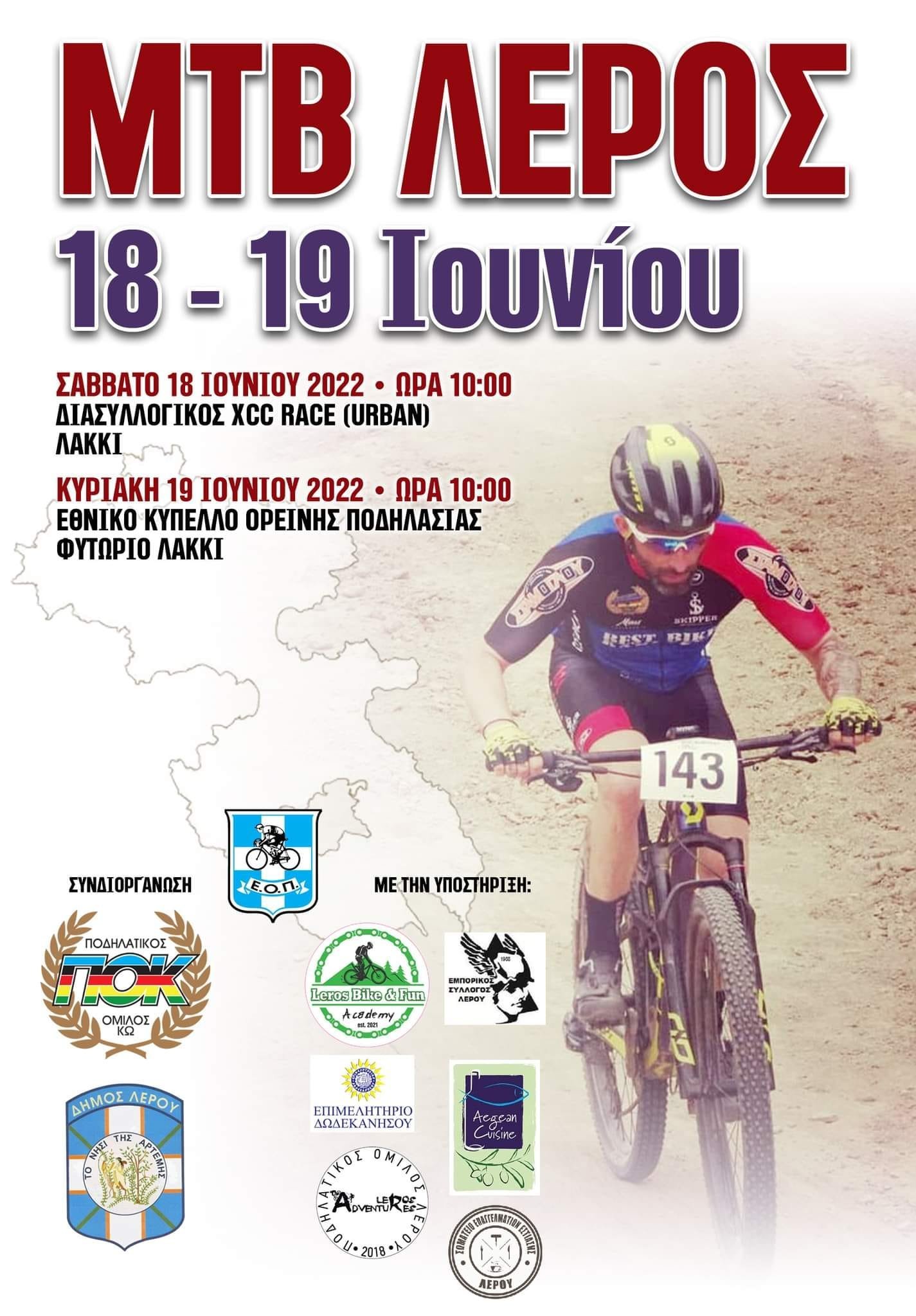Ο Ποδηλατικός Όμιλος Κω σε συνδιοργάνωση με τον Δήμο Λέρου και την υποστήριξη του Ποδηλατικού Ομίλου Λέρου και του Leros Bike & Fun Academy, διοργανώνει το Εθνικό Κύπελλο Ορεινής Ποδηλασίας και διασυλλογικό αγώνα ΜΤΒ URBAN XCC στο Λακκί της Λέρου.