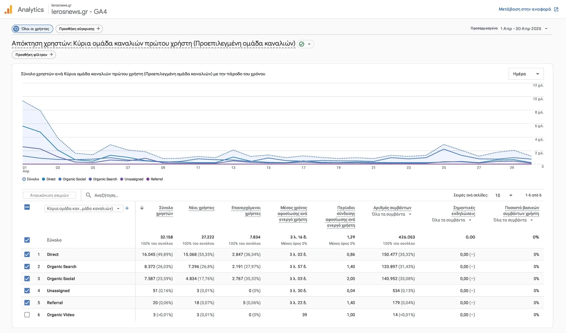 Σταθερά στην κορυφή των προτιμήσεων ανάμεσα στις ενημερωτικές ιστοσελίδες τοπικού ενδιαφέροντος βρίσκεται το LEROS NEWS, καταγράφοντας επισκεψιμότητα τον Απρίλιο του 2025, με 32.158 χιλ. μοναδικούς αναγνώστες (72.289 περιόδους σύνδεσης), σύμφωνα με τα επίσημα στοιχεία του Google Αnalytics.
