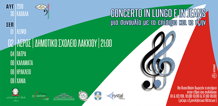 Ρεσιτάλ κλασσικής μουσικής στη Λέρο και σε όλη την Ελλάδα : «Μια συναυλία με τα επίσημα και τα τζην», υπό την αιγίδα του Ιταλικού Μορφωτικού Ινστιτούτου Αθηνών.