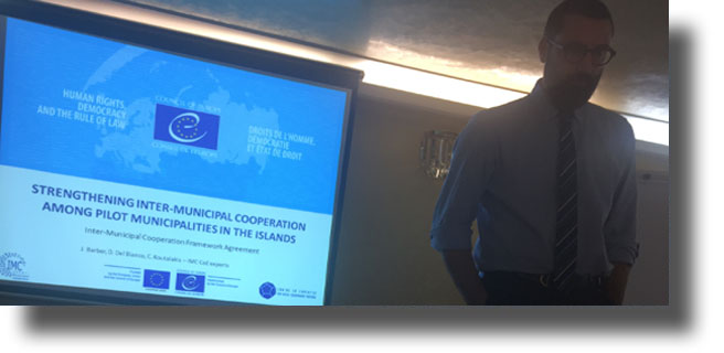 Τη Δευτέρα (20.11.2017) ο Δήμαρχος Λέρου κ. Μιχάλης Κόλιας συνοδευόμενος από τον Δημοτικό Σύμβουλο κ. Νεκτάριο Μπίλλη, συμμετείχε στη 2η προγραμματισμένη συνάντηση με αξιωματούχους του Συμβουλίου της Ευρώπης σχετικά με το πρόγραμμα «Τεχνική Βοήθεια για τη θεσμική ενίσχυση της Τοπικής Αυτοδιοίκησης στην Ελλάδα», με θέμα την ενίσχυση της διαδημοτικής συνεργασίας μεταξύ πιλοτικών νησιωτικών Δήμων μέσω της υλοποίησης του προγράμματος ΔΙΑΔΗΜΟΤΙΚΗΣ ΣΥΝΕΡΓΑΣΙΑΣ (IMC).