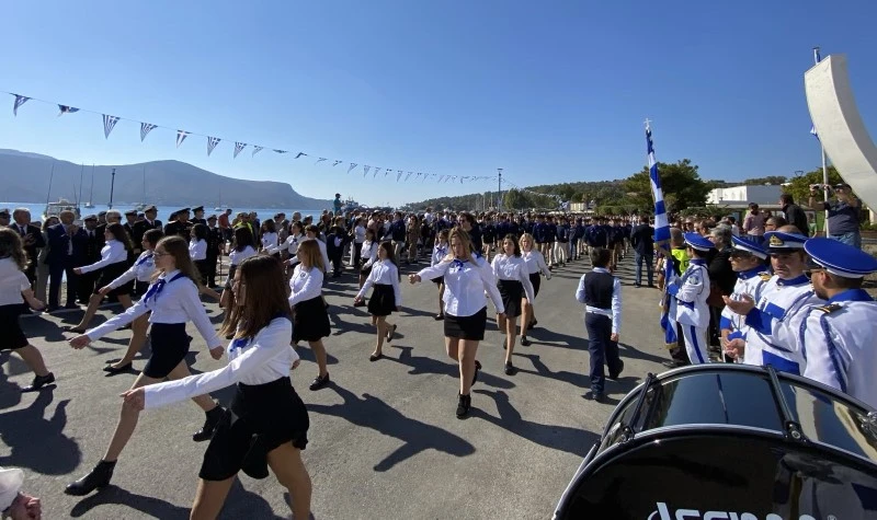 Έναρξη παρέλασης προ των επισήμων, από το Μνημείο Πεσόντων του Α/Τ «Β. Όλγα» προς τη Λέσχη Αξιωματικών Φρουράς Λέρου.