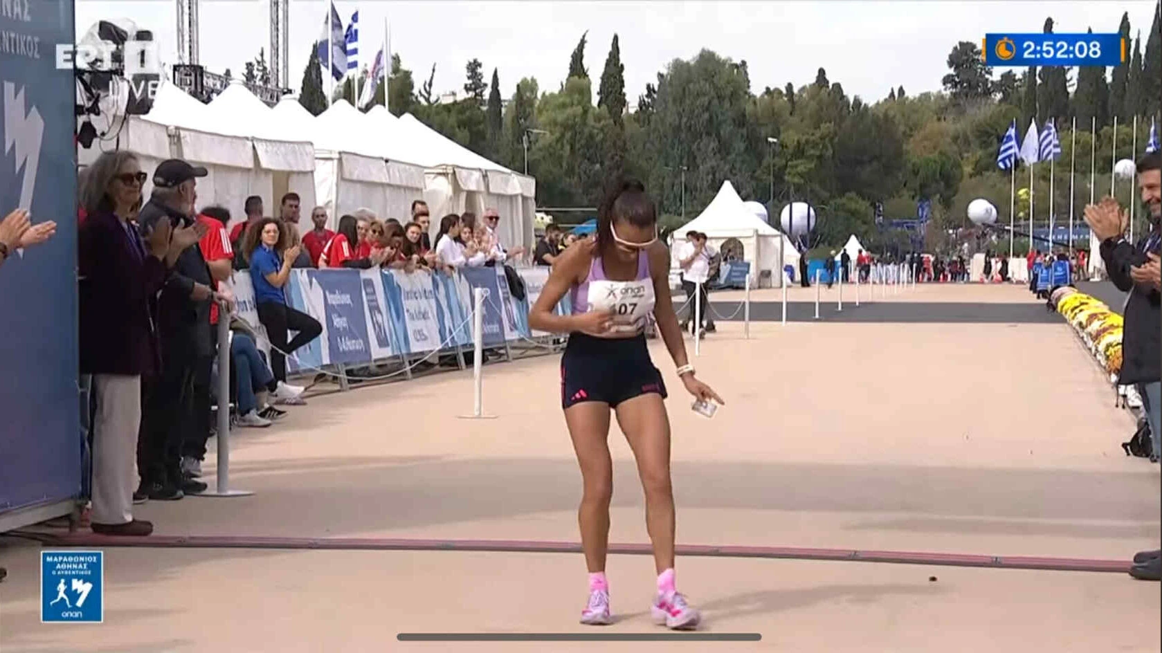 Στα αξιοσημείωτα ότι μόλις έφθασε στον τερματισμό, κατάκοπη από τη διαδρομή η σπουδαία αθλήτρια, κρατούσε στο χέρι της την εικόνα του Ταξιάρχη Πανορμίτη Σύμης!