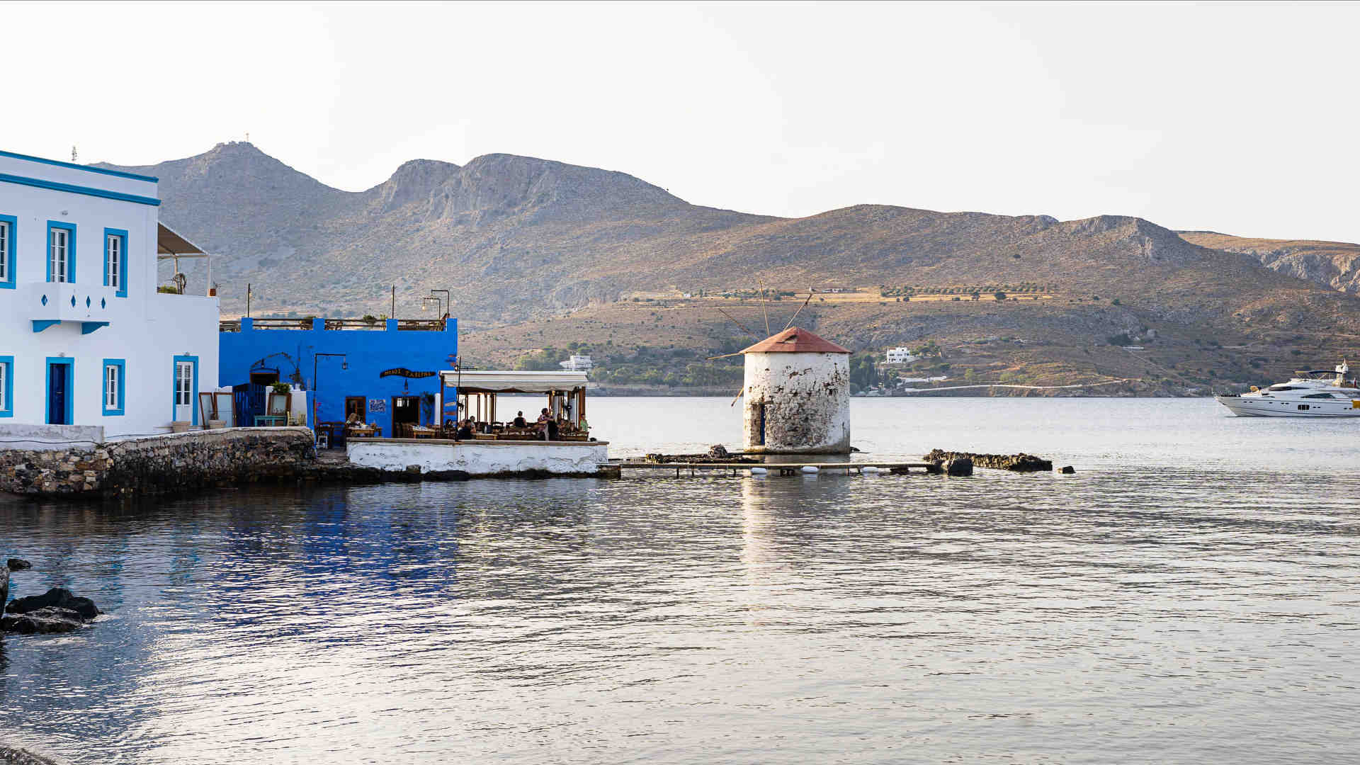 Ο Μύλος στη Λέρο είναι πέρα για πέρα επιχείρηση οικογενειακή. Τουτέστιν, κατεβαίνοντας τα σκαλάκια προς την είσοδο γνωρίσαμε τη σύζυγο του σεφ Μάριου Κουτσουνάρη, που έφευγε εκείνη την ώρα για να ταΐσει τα δύο τους παιδάκια: την τρισχαριτωμένη Αυρηλία και το ολίγων μηνών μωρό που τώρα ξεκίνησε να τρώει τις κρέμες του. Στην είσοδο μάς καλωσόρισε ο αδελφός του Γιώργος, ο χαρισματικά επικοινωνιακός και πολύγλωσσος οινογνώστης, που έχει ανάγει την υποδοχή σε τέχνη. Στο μπαράκι όπου περιμένει κανείς εωσότου ετοιμαστεί το τραπέζι του είτε απλώς απολαμβάνει το ποτό του με την ωραία θέα της Αγίας Μαρίνας στο φόντο, συναντήσαμε τους γονείς, τον πατέρα τους Τάκη, που ασχολήθηκε πρώτος με την εστίαση ανοίγοντας την ταβέρνα το 1999, και τη μαμά τους Ιωάννα, που ως σήμερα έχει την ευθύνη των γλυκών.
