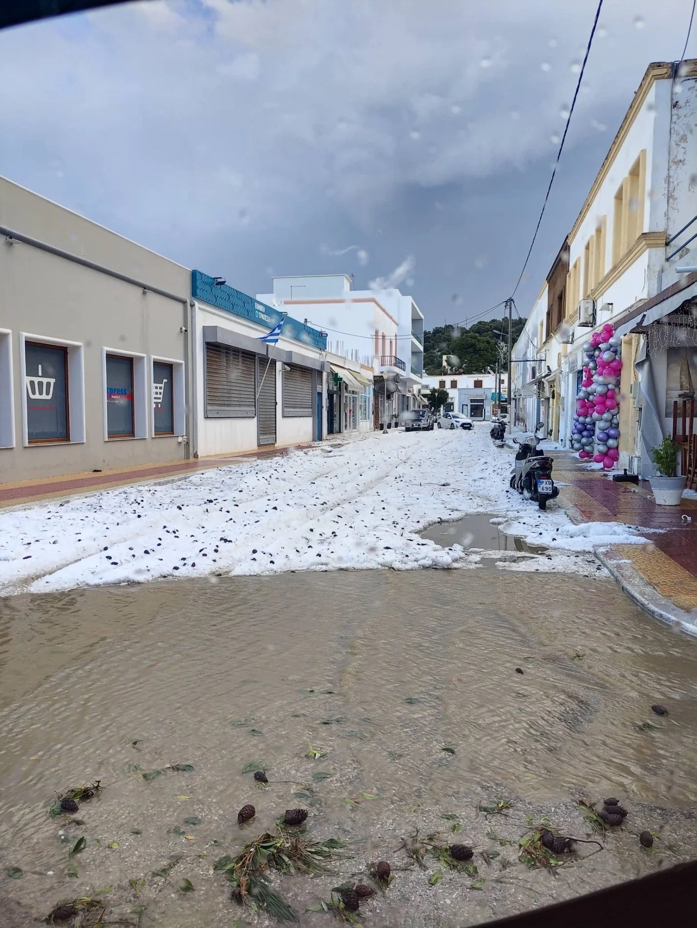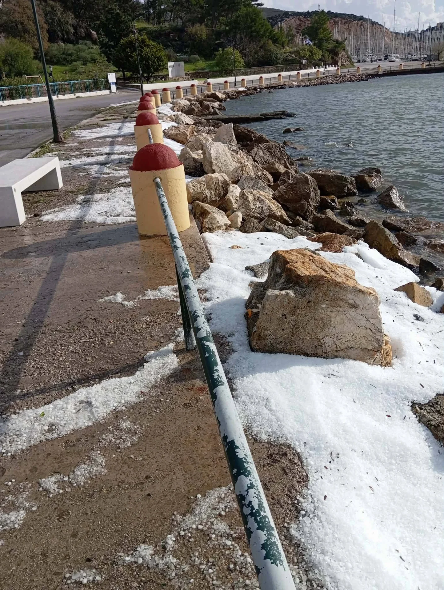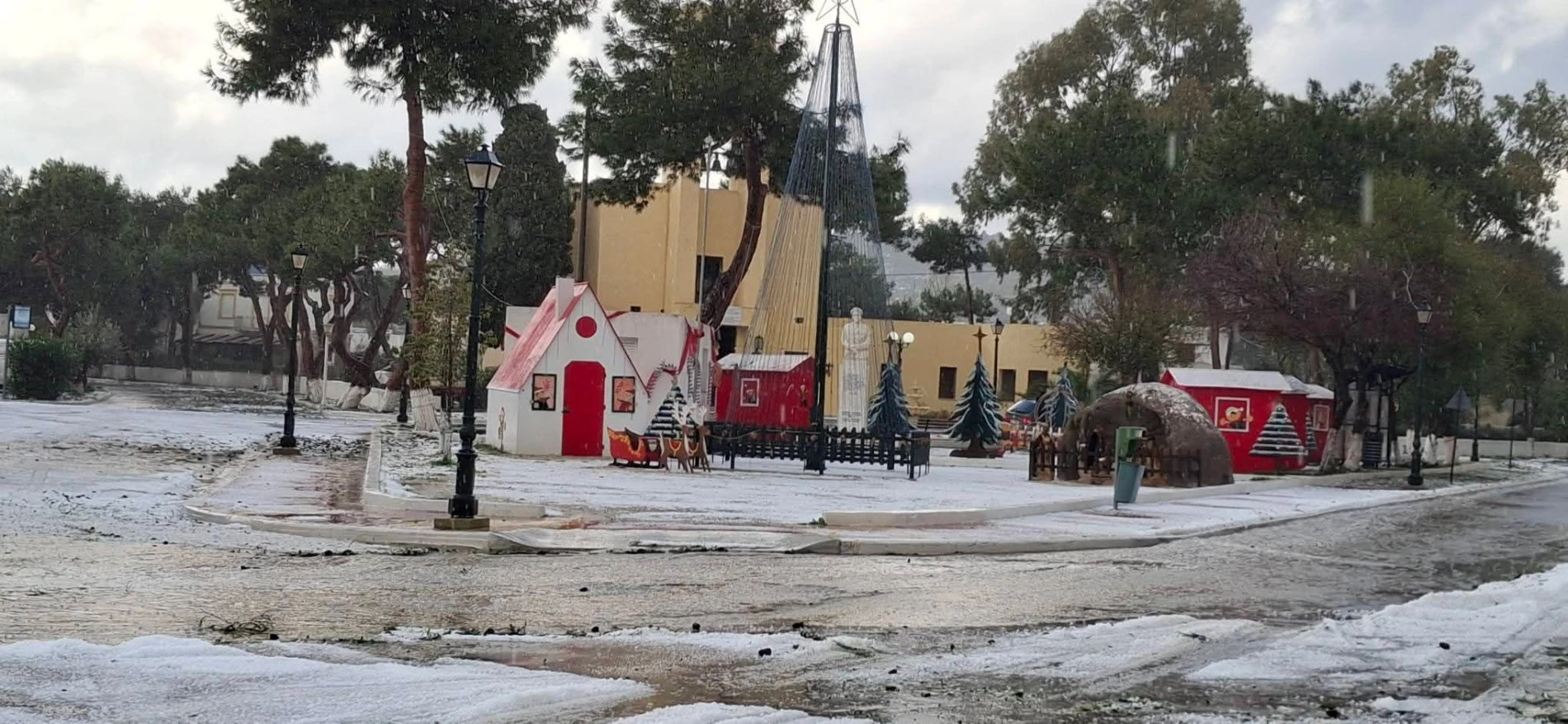 Έντονο καιρικό φαινόμενο σημειώθηκε στη Λέρο ανήμερα των Χριστουγέννων, όταν ισχυρή χαλαζόπτωση έπληξε μεγάλο μέρος του νησιού, προκαλώντας εικόνες που θύμιζαν χειμερινό σκηνικό ορεινής περιοχής.