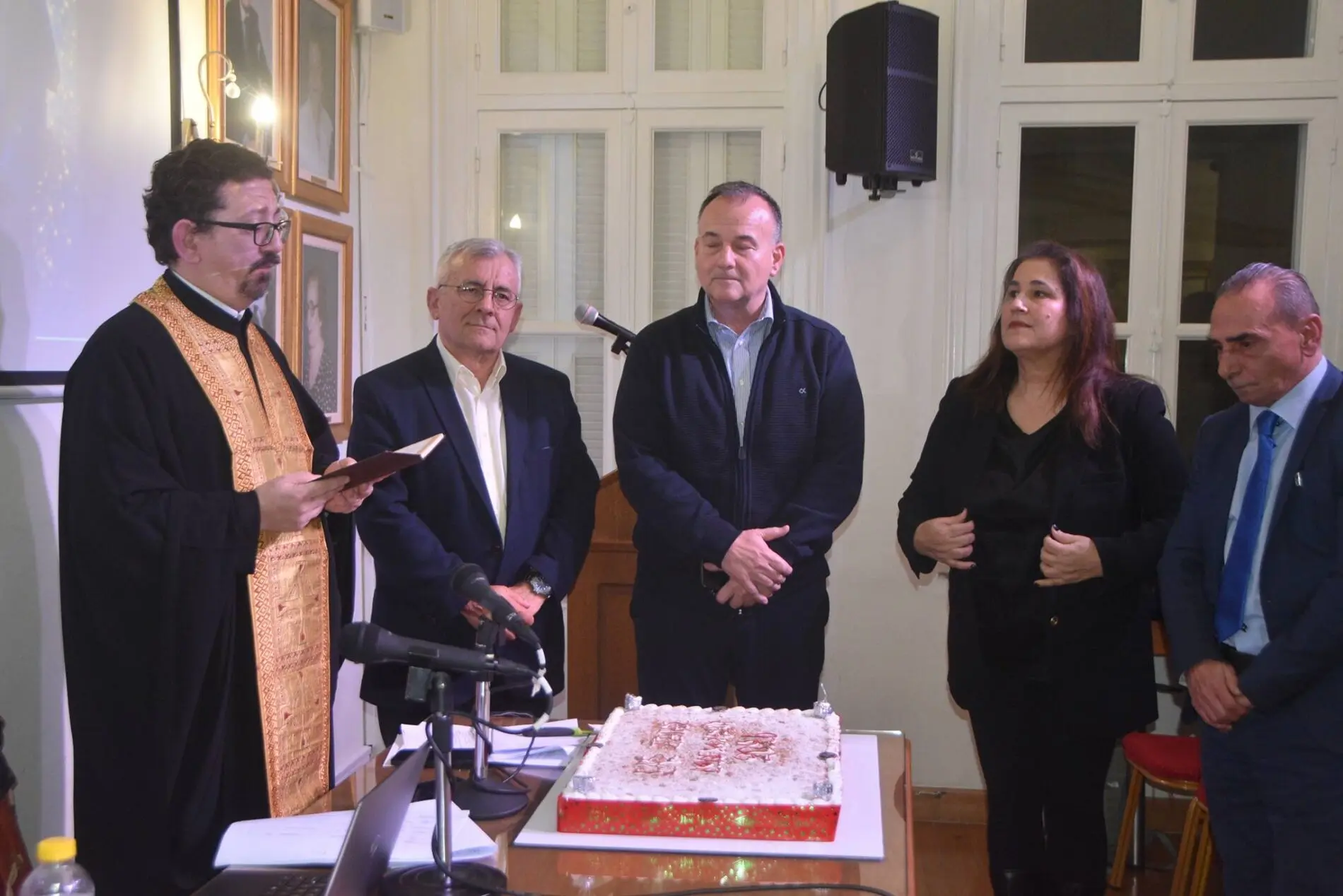 Την πίτα ευλόγησε ο πατέρας Εμμανουήλ Σκληβάκης.