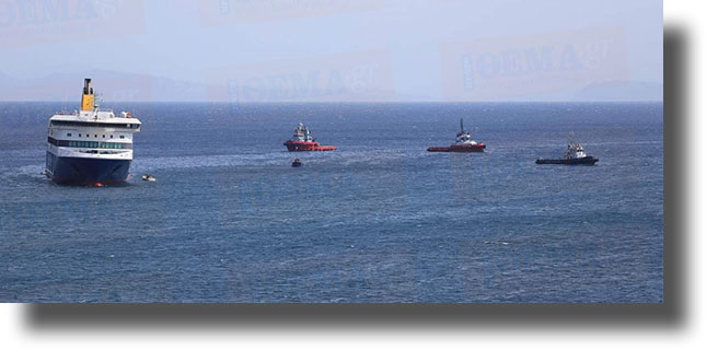 Θα οδηγηθεί με τη βοήθεια των ρυμουλκών στο λιμάνι της Ίου, προκειμένου να αδειάσει τα φορτηγά και τα ΙΧ που έχει στο εσωτερικό του