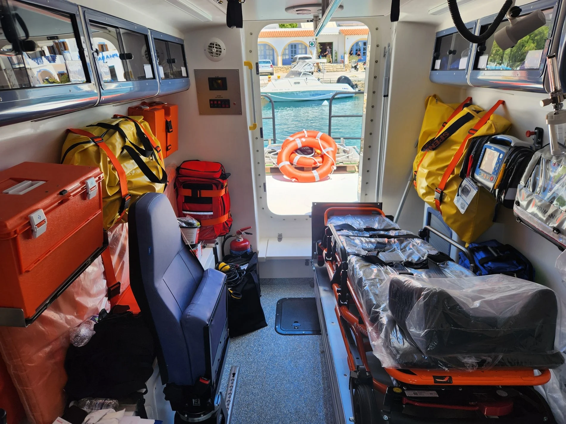 Πρόκειται για ένα εξειδικευμένο σκάφος που σχεδιάστηκε από στελέχη του Λιμενικού Σώματος και του ΕΚΑΒ, ώστε να ανταποκρίνεται στις ιδιαίτερες ανάγκες της περιοχής μας για την άμεση και ασφαλή διακομιδή ασθενών.