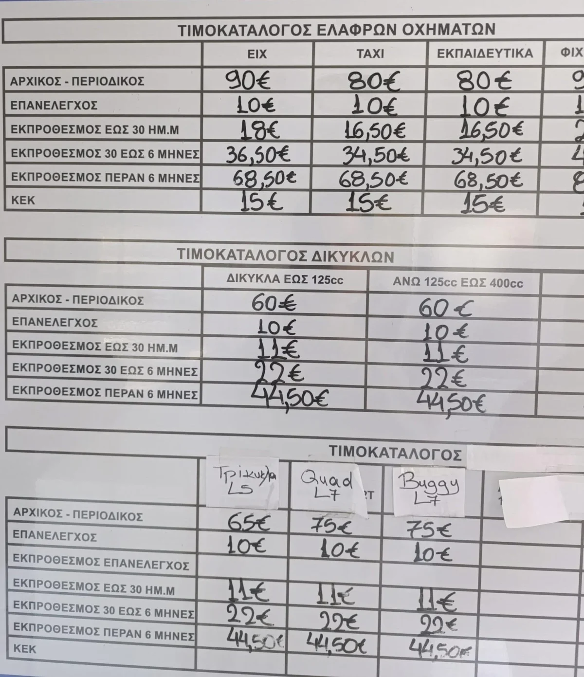 - Αρχικός τεχνικός έλεγχος ΙΧ: 90€