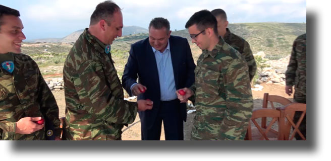 Ο Υπουργός Εθνικής Άμυνας Πάνος Καμμένος, συνοδευόμενος από τον Αρχηγό ΓΕΣ Αντιστράτηγο Αλκιβιάδη Στεφανή, επισκέφθηκε τα Φυλάκια Αγαθονησίου και Φαρμακονησίου και αντάλλαξε ευχές για την εορτή του Πάσχα με τους Αξιωματικούς, τους Υπαξιωματικούς, τους Οπλίτες και τους Εθνοφύλακες.