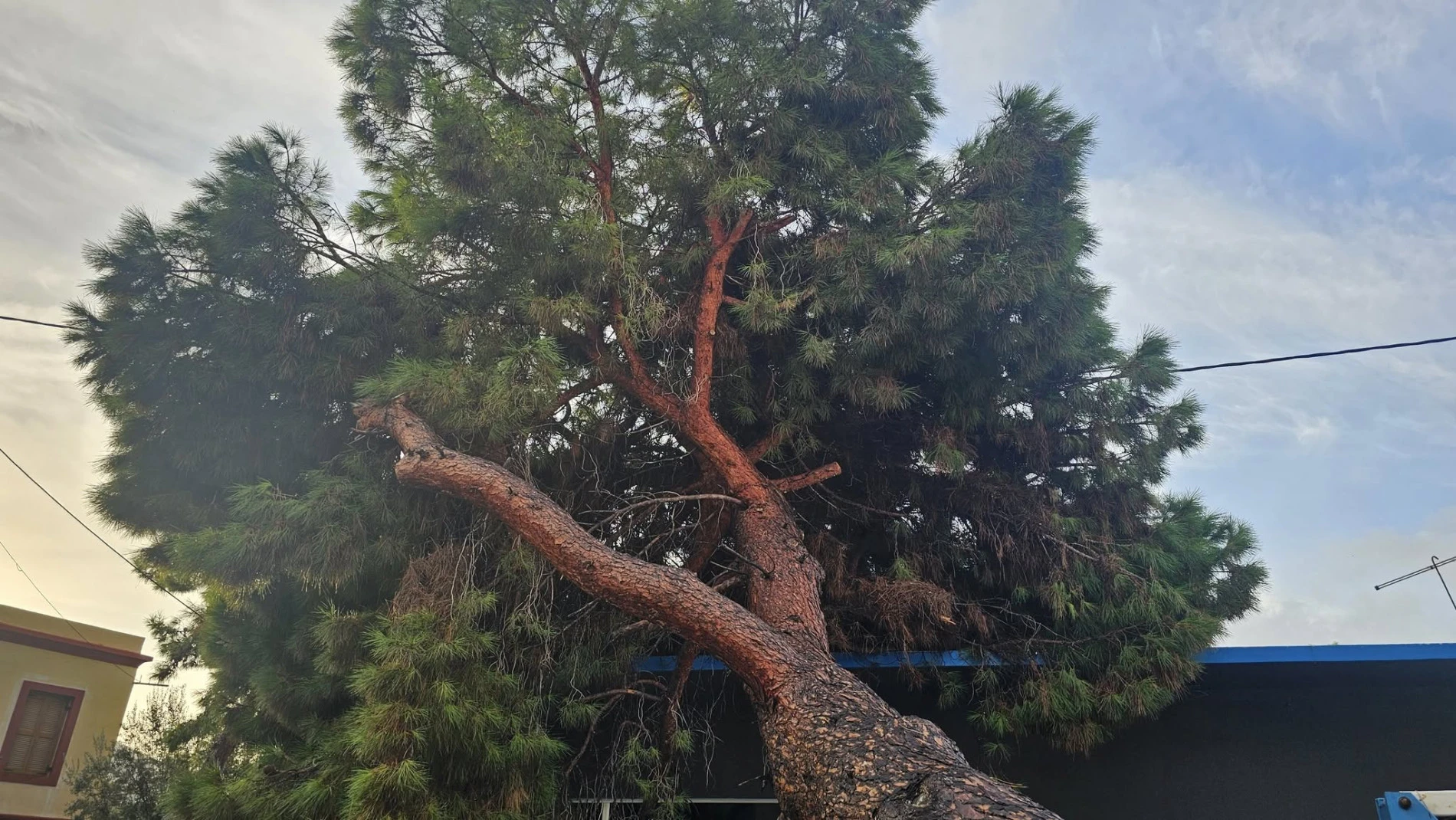 Ένα μεγάλο πεύκο ξεριζώθηκε στην περιοχή του Λακκίου, εξαιτίας της σφοδρής νεροποντής που έπληξε τη Λέρο. Το δέντρο έπεσε πάνω σε κτίριο, προκαλώντας μικρές υλικές ζημιές, χωρίς ωστόσο να αναφερθούν τραυματισμοί.