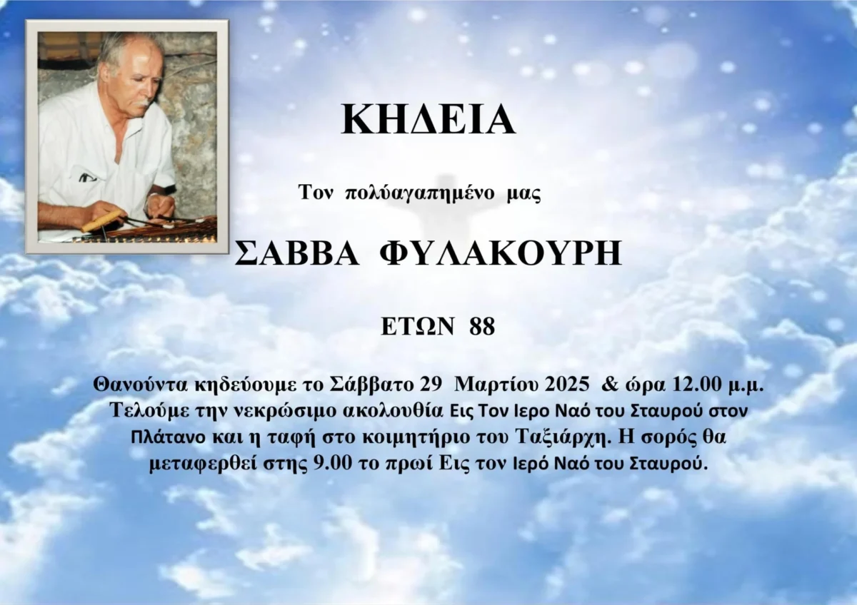 Τέλος εποχής για την Ιστορική πλατεία του Πλατάνου αποτελεί ο Θάνατος του Σάββα Φυλακούρη.