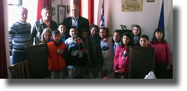 Οι μαθητές συνοδευόμενοι από τον εκπαιδευτικό κ. Διαμαντάρα Ιωάννη επισκέφθηκαν το Γραφείο Δημάρχου όπου αφού τους καλωσόρισε τους ενημέρωσε για τη λειτουργία του Δήμου και των Υπηρεσιών του καθώς και τη λειτουργία του Δημοτικού Συμβουλίου, παρουσία του Αντιδημάρχου κ. Κωνσταντινίδη Ιωάννη.