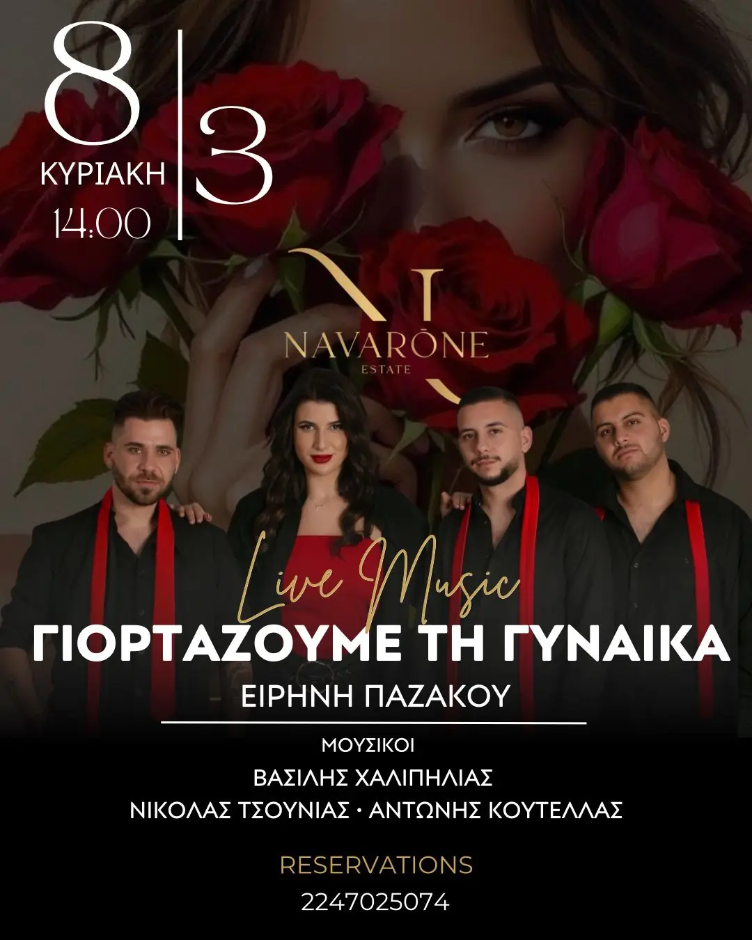 Από το μεσημέρι της Κυριακής, στο Navarone Estate, σας περιμένουμε να διασκεδάσουμε, να χορέψουμε και να περάσουμε όμορφες στιγμές με ένα υπέροχο λαϊκό και ελαφρολαϊκό πρόγραμμα.