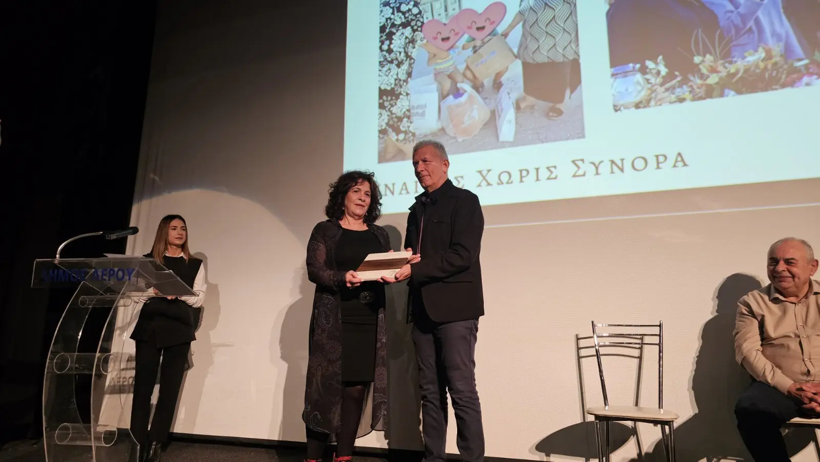 - Το δεύτερο βραβείο απονεμήθηκε στον Σύλλογο «Γυναίκες χωρίς Σύνορα» Λέρου, για τη σπουδαία κοινωνική και ανθρωπιστική του προσφορά. Το βραβείο παρέλαβαν η Πρόεδρος του Συλλόγου Άννα Ταχλιαμπούρη και η τέως Πρόεδρος Άννα Καρπαθάκη.