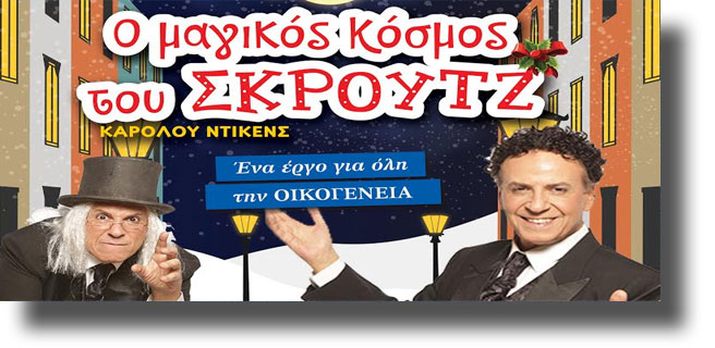 Η παιδική σκηνή του ΓΙΑΝΝΗ ΧΡΙΣΤΟΠΟΥΛΟΥ που επισκέπτεται φέτος την Πόλη σας για 10η συνεχή χρονιά, με ιδιαίτερη χαρά παρουσιάζει φέτος τον καταξιωμένο μας ηθοποιό ΧΑΡΗ ΡΩΜΑ! στο γνωστό έργο του ΚΑΡΟΛΟΥ ΝΤΙΚΕΝΣ “Ο ΜΑΓΙΚΟΣ ΚΟΣΜΟΣ ΤΟΥ ΣΚΡΟΥΤΖ”