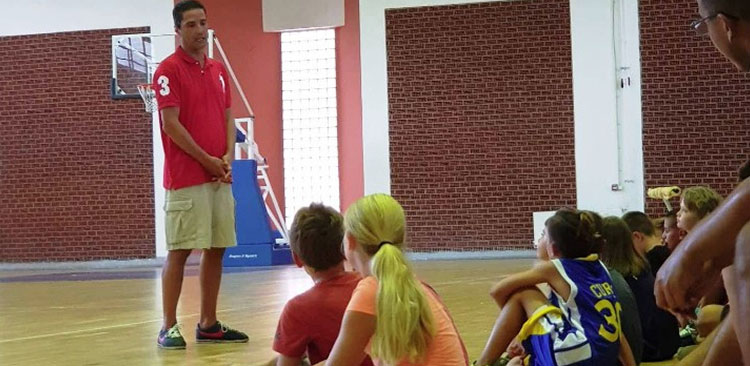 Οι άνθρωποι του τοπικού Πανιωνίου έσπευσαν να τον προσκαλέσουν στο γήπεδο για να μπορέσουν να τον γνωρίσουν από κοντά οι αθλητές των ακαδημιών του συλλόγου και τους απευθύνει λίγα (σοφά) λόγια για το μπάσκετ.