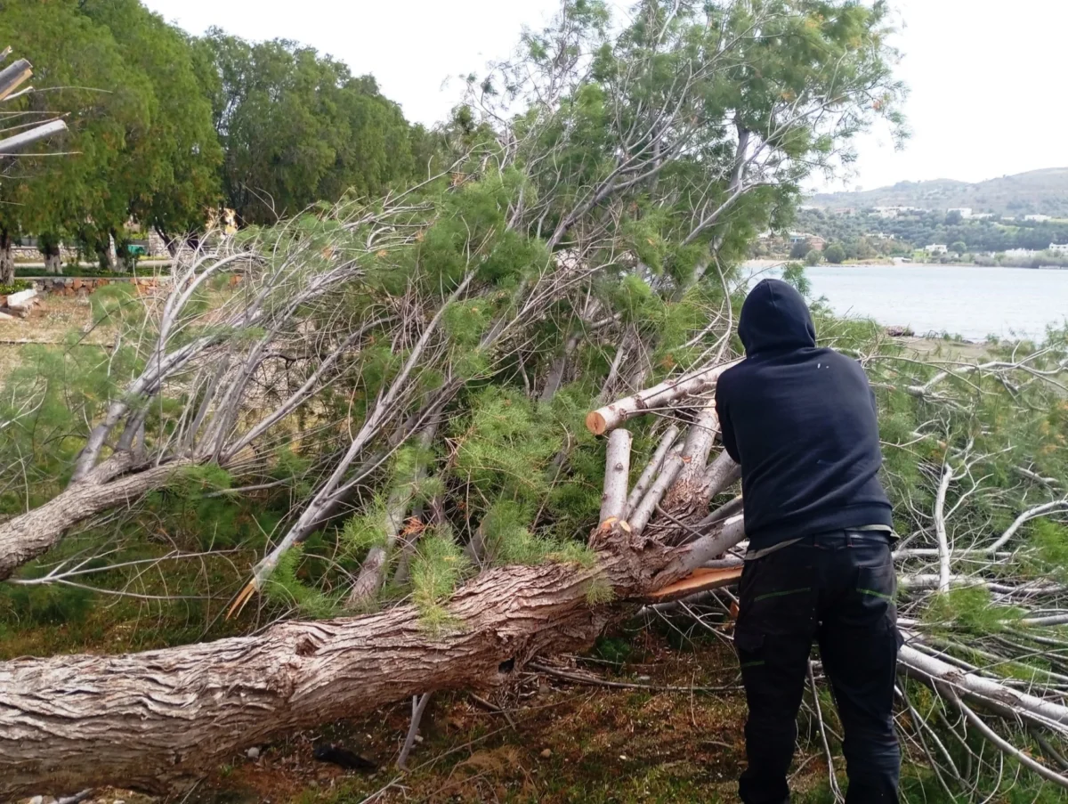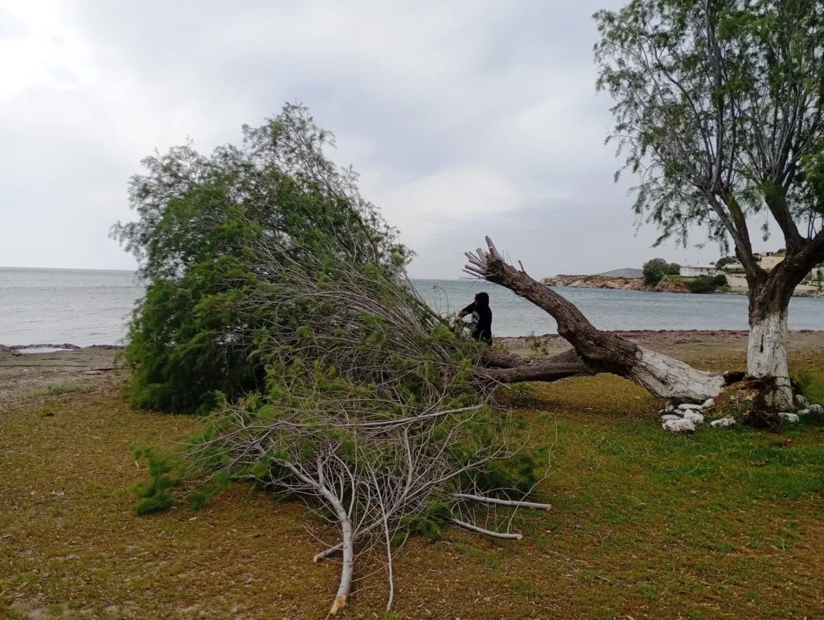 Η κακοκαιρία που πλήττει τις τελευταίες ώρες το νησί, “κατάφερε” να ξεριζώσει και να ρίξει στο έδαφος ένα μεγάλο Αλμυρίκι (ταμαρίδα – Tamarix sp) στην παραλία της Γούρνας.