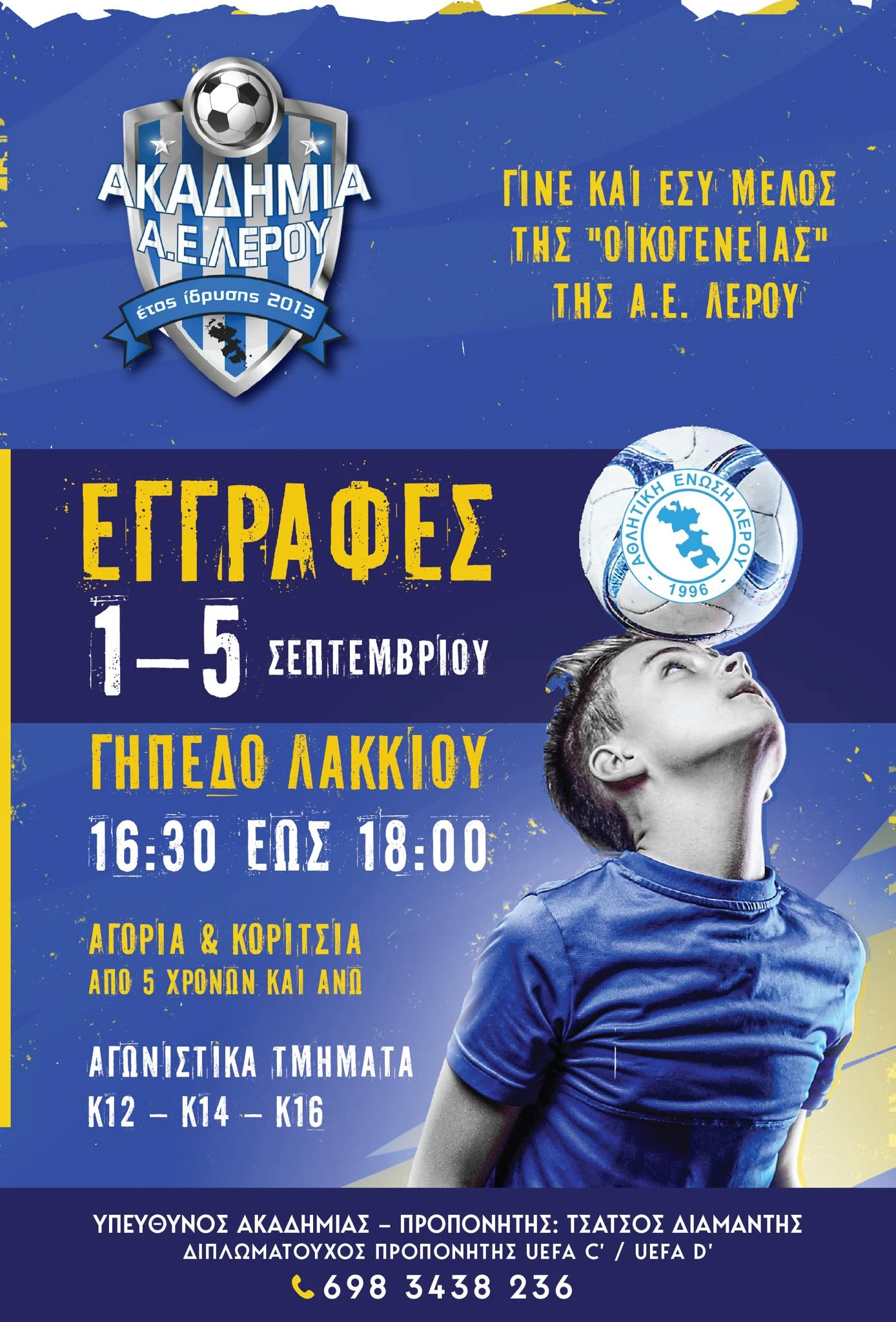- Εγγραφές από Δευτέρα 1/9 έως Παρασκευή 5/9 στο γήπεδο του Λακκιου από τις 16:30-18:00!