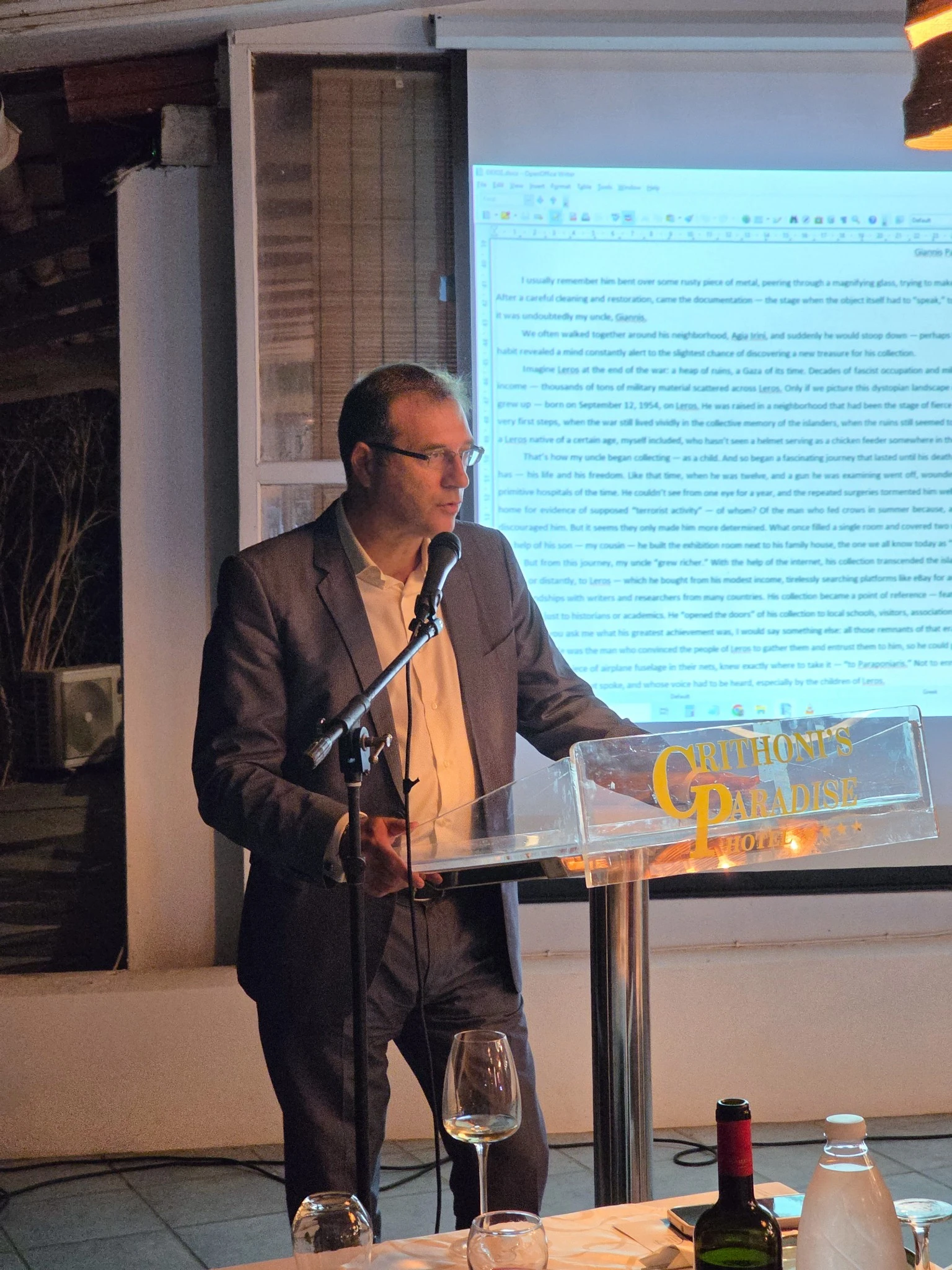 Δελτίο Τύπου – Η Εταιρεία Μελέτης της Ιστορίας της Λέρου (ΕΜΙΛ) πραγματοποίησε με μεγάλη επιτυχία την 1η Ετήσια Εκδήλωση. Η βραδιά ήταν αφιερωμένη στη μνήμη του Γιάννη Παραπονιάρη, του οποίου η αγάπη και η αφοσίωση στη διάσωση της ιστορίας του νησιού μας συνεχίζουν να μας εμπνέουν και να καθοδηγούν το έργο μας.