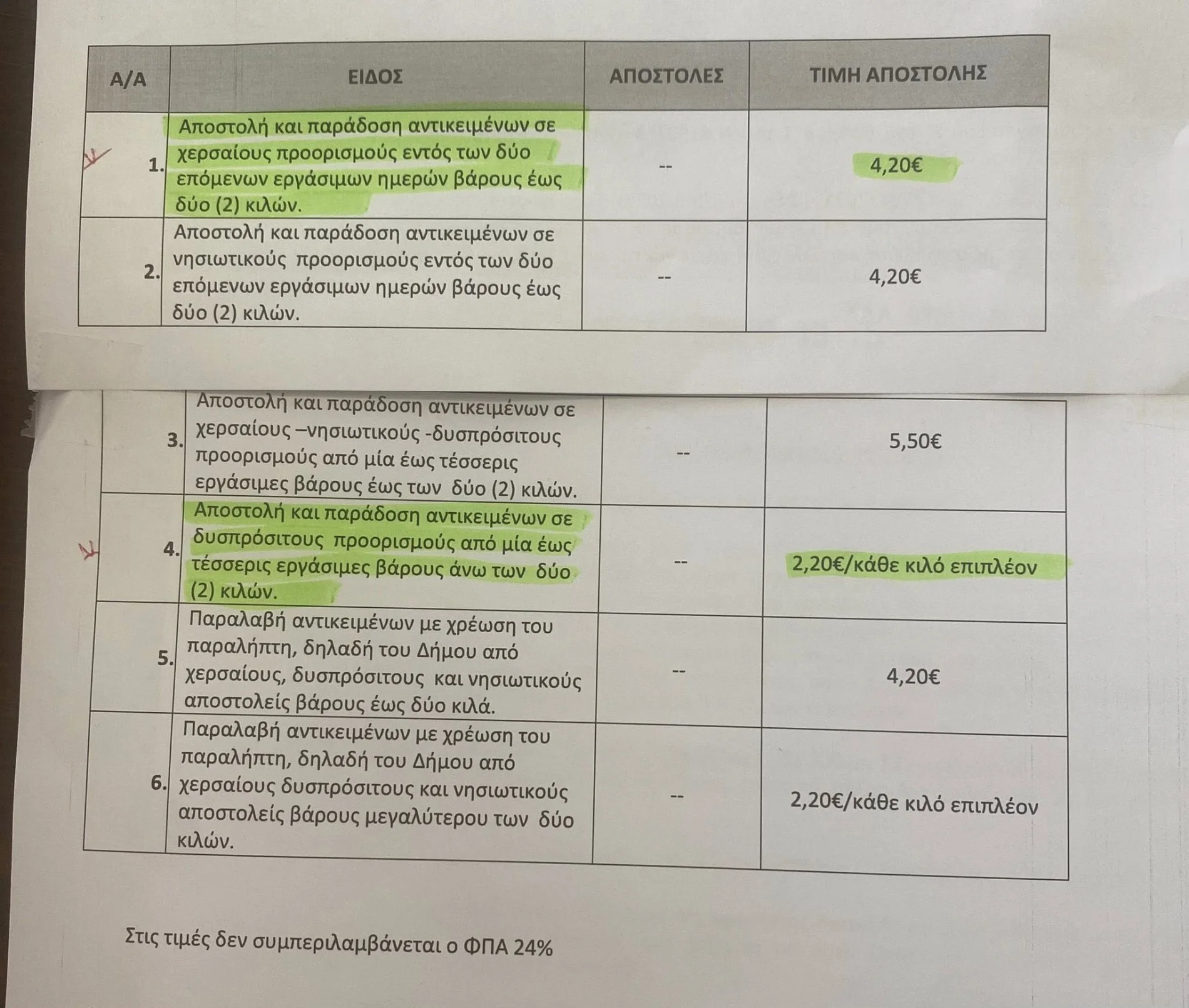 • Αποστολή σε χερσαίους προορισμούς (έως 2 κιλά):