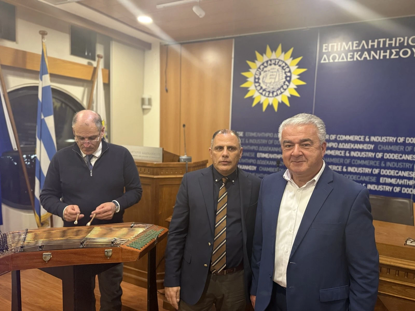 Στην εκδήλωση κοπής της πρωτοχρονιάτικης πίτας του Επιμελητηρίου Δωδεκανήσου έδωσαν το «παρών» οι κ. Θεόδωρος Ασβεστάς και Ιωάννης Θεμέλαρος, εκπροσωπώντας τη Λέρο και την επιχειρηματική της κοινότητα.