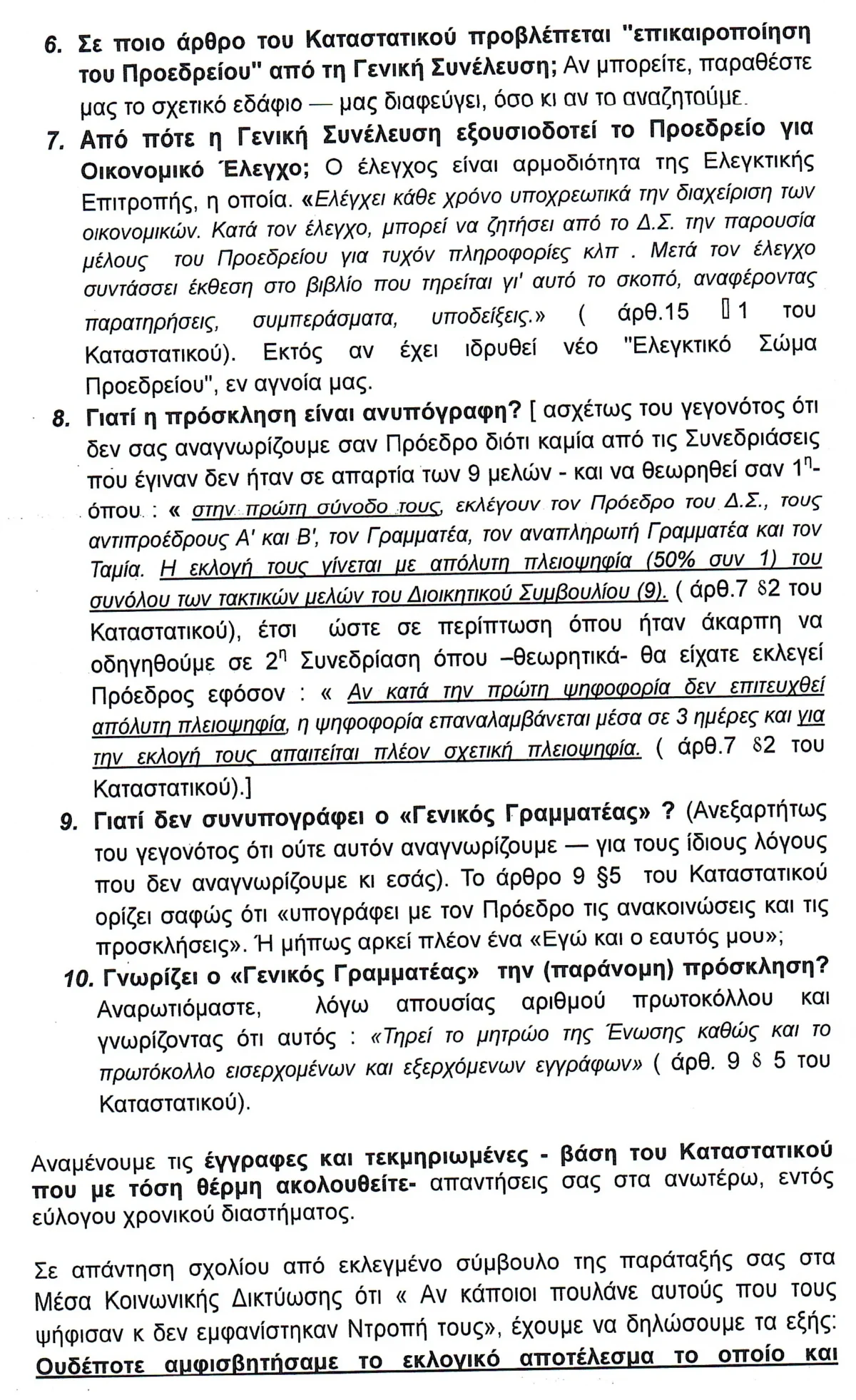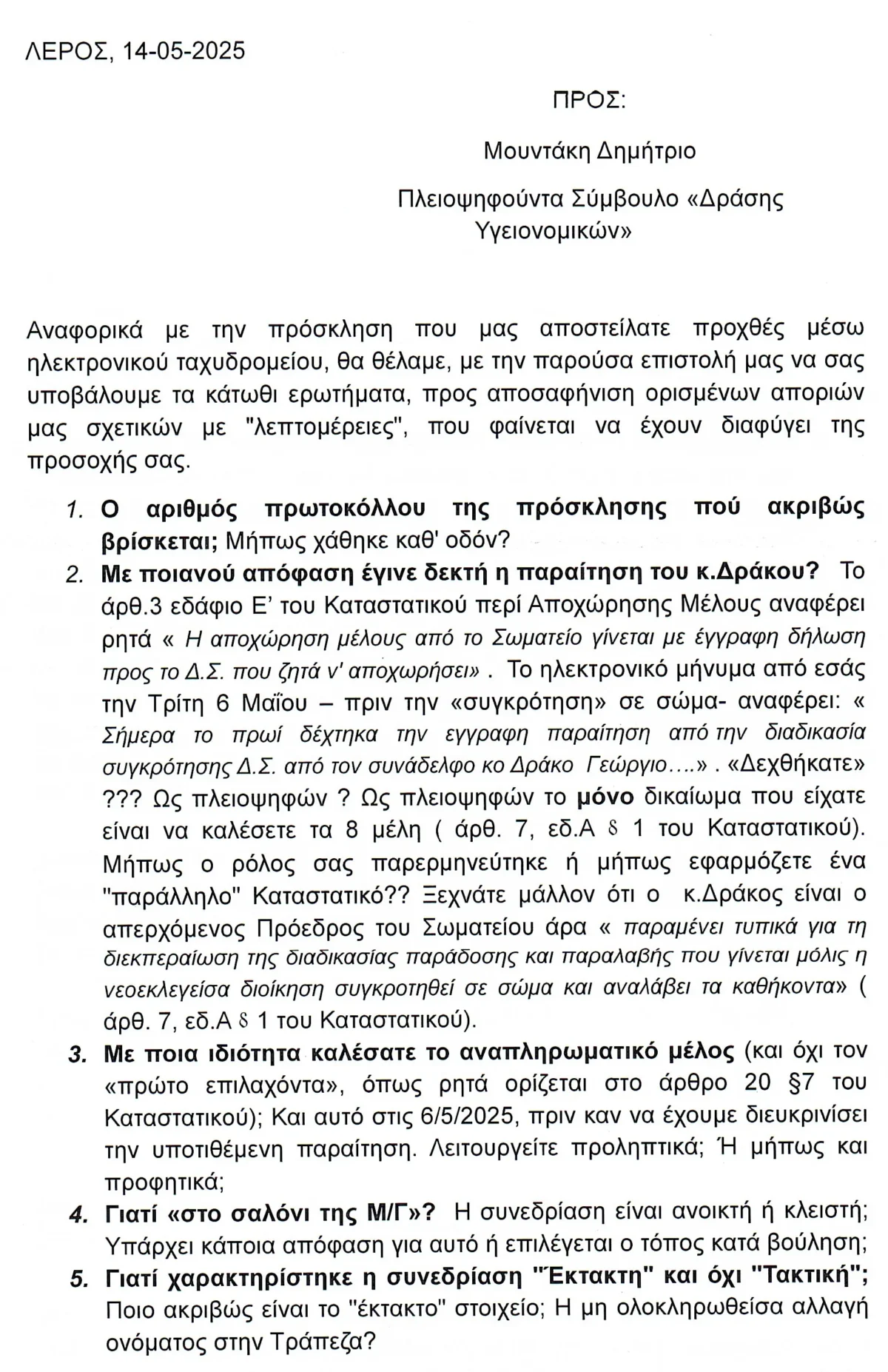 Στη δημοσιότητα δόθηκε η επιστολή - απάντηση της Ενωτικής Κίνησης Εργαζομένων αναφορικά με την πρόσκληση που εξέδωσε ο κ. Μουντάκης για τη Γενική Συνέλευση στις 30 Μαΐου: