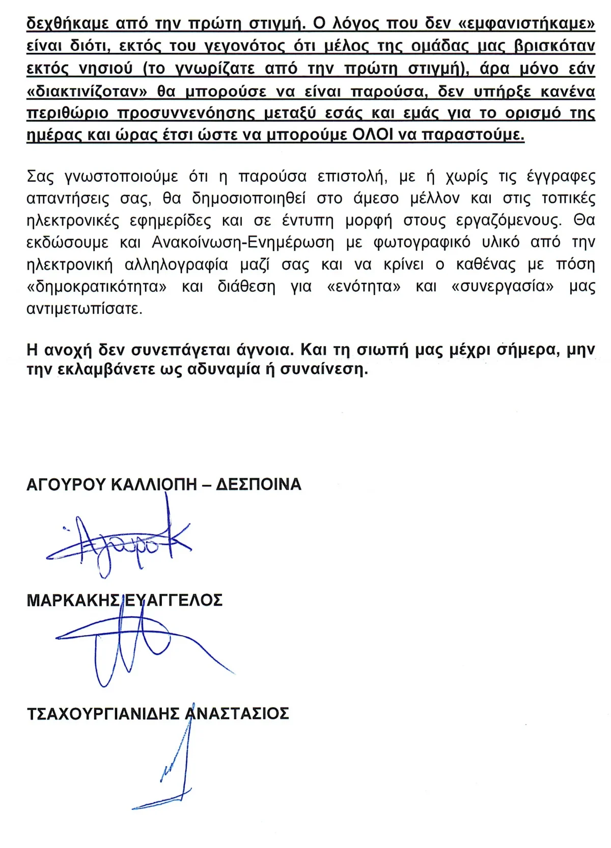 Στη δημοσιότητα δόθηκε η επιστολή – απάντηση της Ενωτικής Κίνησης Εργαζομένων αναφορικά με την πρόσκληση που εξέδωσε ο κ. Μουντάκης για τη Γενική Συνέλευση στις 30 Μαΐου: