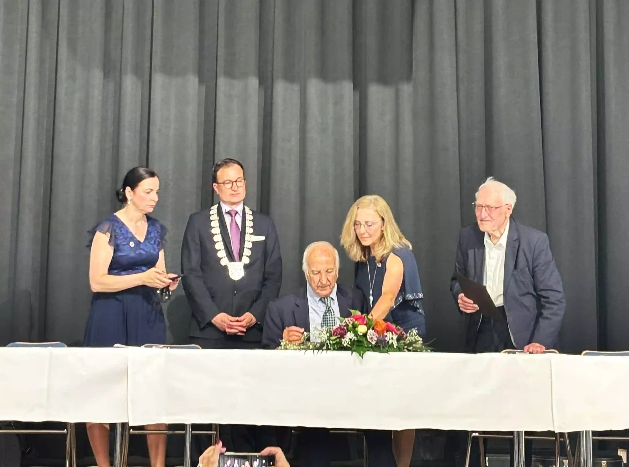 Στο πλαίσιο των εορτασμών, ο Αντώνης Νταλλαρής τιμήθηκε ιδιαίτερα, καθώς του δόθηκε η ύψιστη τιμή να υπογράψει στο Χρυσό Βιβλίο της πόλης Aschheim – μία αναγνώριση που απονεμήθηκε μόνο σε αυτόν από όλους τους προσκεκλημένους των αδελφοποιημένων πόλεων. Ο ίδιος, μαζί με την Άρτεμις, συμμετέχουν και υποστηρίζουν ενεργά την αδελφοποίηση από την αρχή, διατηρώντας ζωντανή αυτή τη φιλία επί 25 συναπτά έτη.